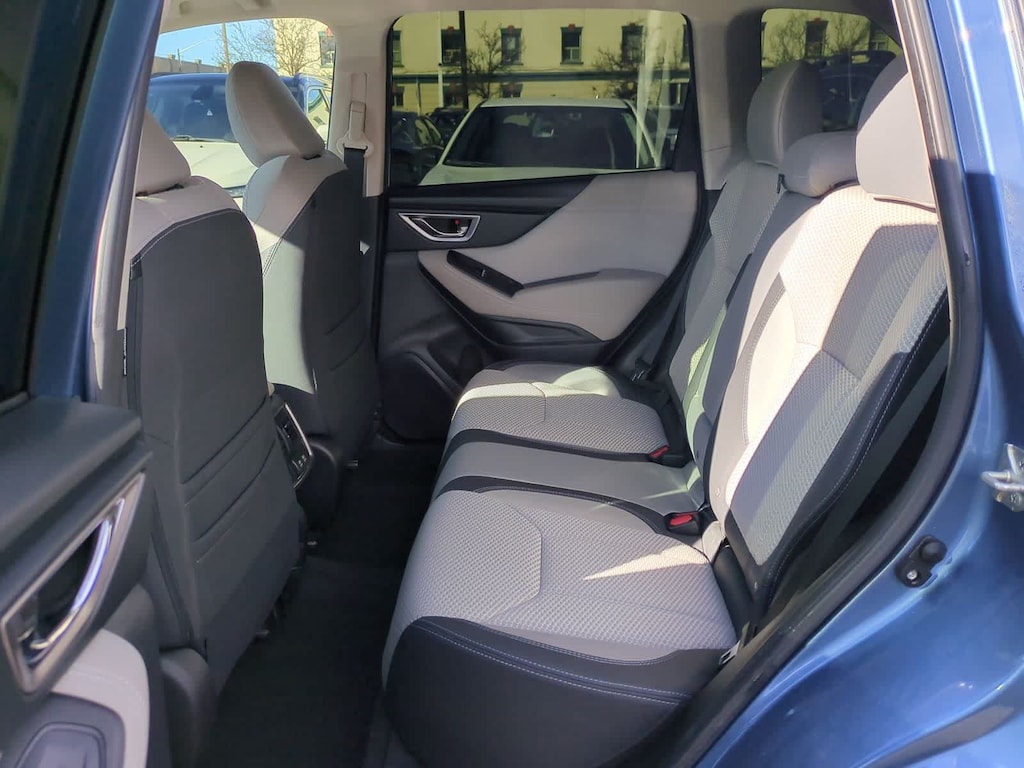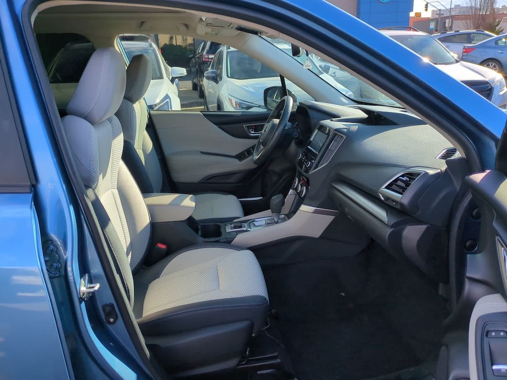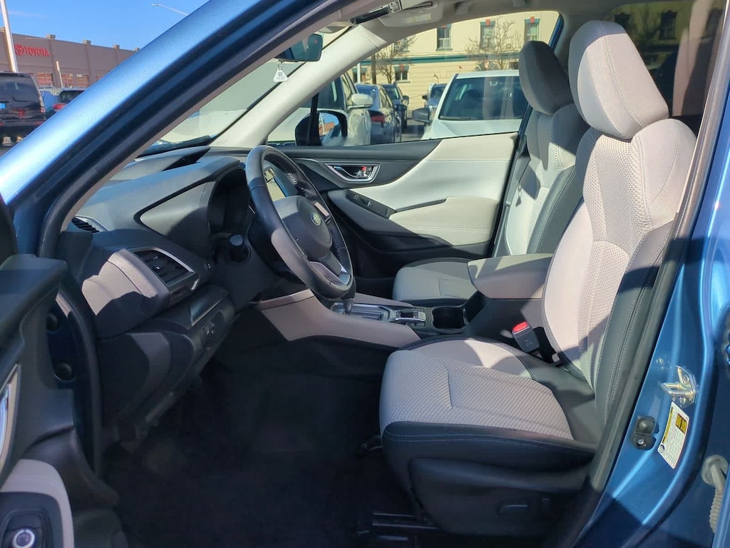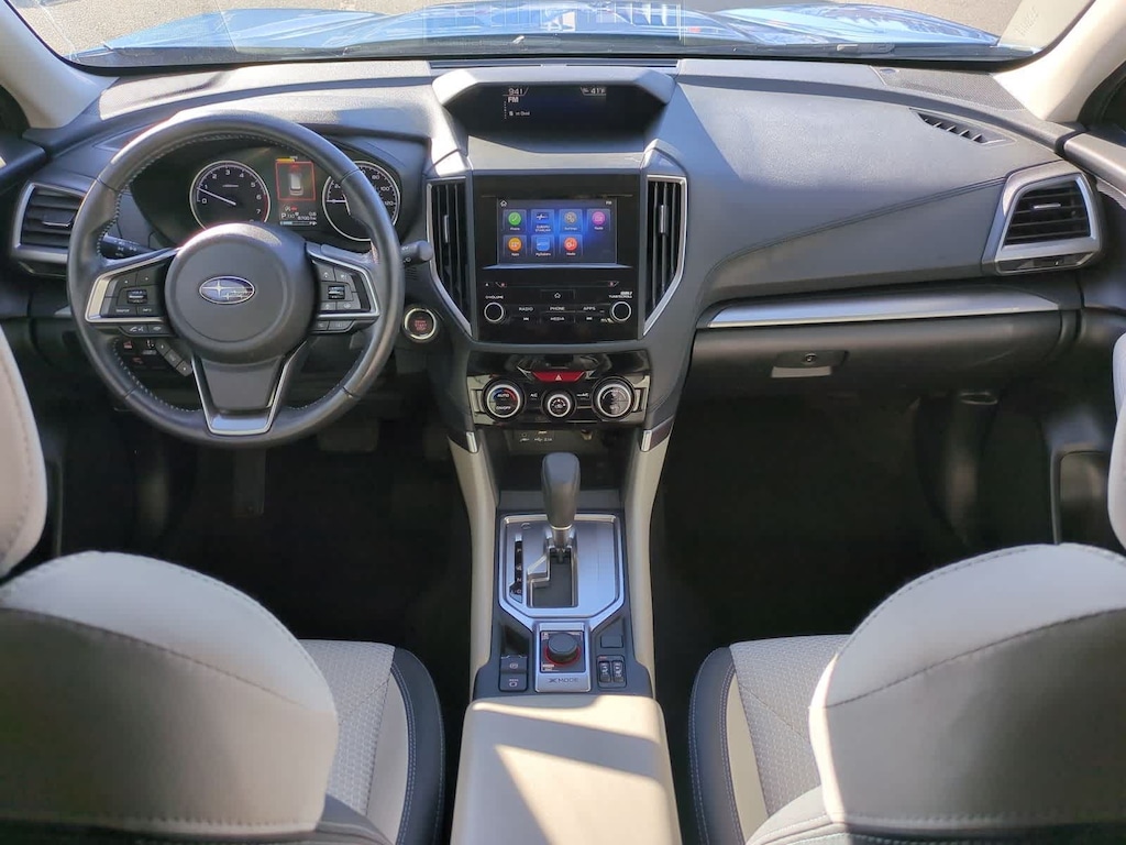 CARFAX One-Owner. Clean CARFAX. Horizon Blue Pearl 2020 Subaru Forester Premium AWD Lineartronic CVT 2.5L 4-Cylinder DOHC 16V VVT 3.70 Axle Ratio, 4-Wheel Disc Brakes, 6 Speakers, ABS brakes, Air Conditioning, All-Weather Floor Liners, Alloy wheels, AM/FM radio: SiriusXM, Auto-Dimming Mirror w/Compass & HomeLink, Automatic temperature control, Blind Spot Detection w/Rear Cross Traffic Alert, Brake assist, Bumpers: body-color, Cargo Net, CD player, Cloth Upholstery, Driver Assist Tech Pkg & Keyless Acc & Pwr Rr Gate, Driver door bin, Driver vanity mirror, Drivers Seatback Pocket, Dual front impact airbags, Dual front side impact airbags, Electronic Stability Control, Emergency communication system: STARLINK Safety and Security (Subscription Required), Exterior Parking Camera Rear, Four wheel independent suspension, Front anti-roll bar, Front Bucket Seats, Front Center Armrest, Front reading lights, Fully automatic headlights, Gloss Black HVAC Control Panel Bezel, Heated door mirrors, Heated Front Bucket Seats, Heated front seats, Illuminated entry, Keyless Access w/Push-Button Start, Knee airbag, Low tire pressure warning, Occupant sensing airbag, Outside temperature display, Overhead airbag, Overhead console, Panic alarm, Passenger door bin, Passenger vanity mirror, Power door mirrors, Power driver seat, Power moonroof: Panoramic, Power Rear Gate, Power steering, Power windows, Radio data system, Radio: Subaru Starlink 6.5 Multimedia Plus System, Rear anti-roll bar, Rear Dual USB Charge Ports, Rear seat center armrest, Rear window defroster, Rear window wiper, Remote keyless entry, Roof rack: rails only, Security system, Speed control, Speed-sensing steering, Split folding rear seat, Spoiler, STARLINK/Apple CarPlay/Android Auto, Steering wheel mounted audio controls, Tachometer, Telescoping steering wheel, Tilt steering wheel, Traction control, Trip computer, Variably intermittent wipers, Wheels: 17 x 7.0J Black Machine Finish Alloy.