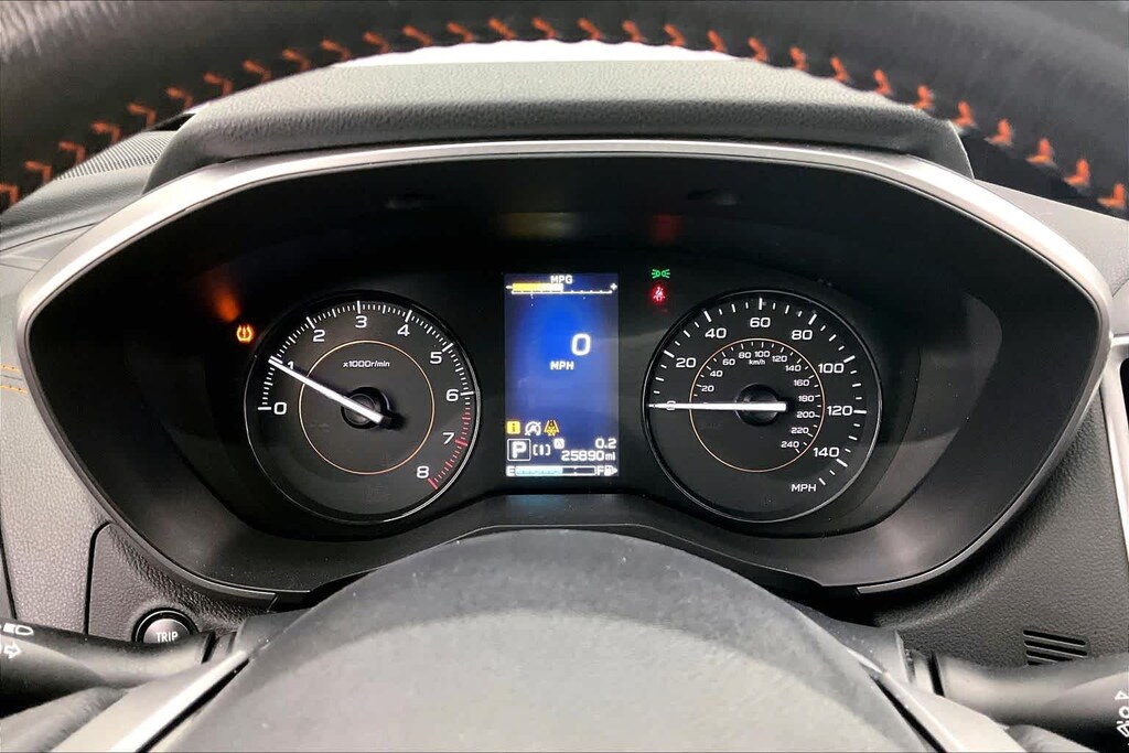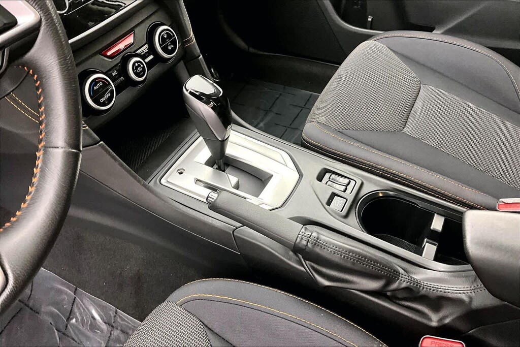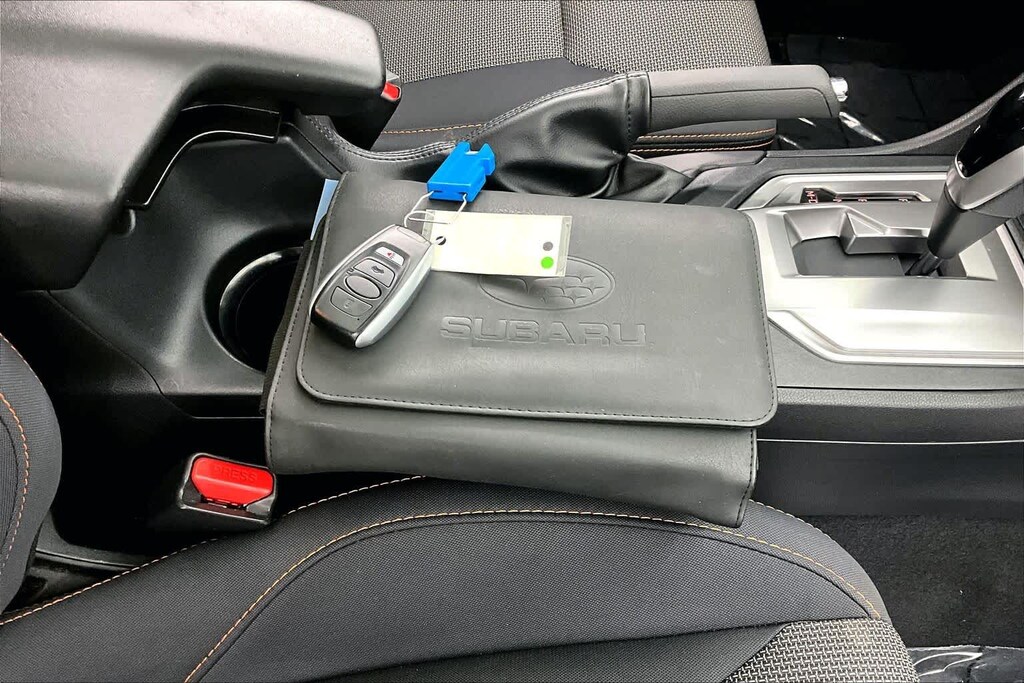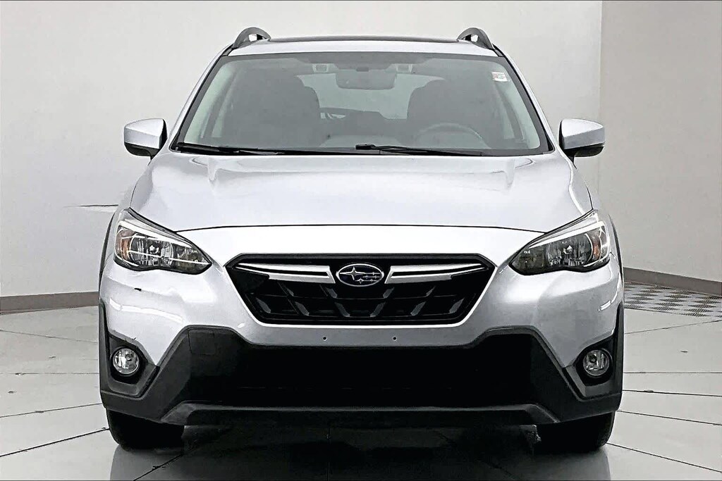 Moonroof Package (6-Way Power Drivers Seat, Blind Spot Detection (BSD), EyeSight System, Keyless Access w/Push-Button Start, and Power Moonroof), Popular Package #2 (All-Weather Floor Liners, Auto-Dimming Mirror w/Compass & HomeLink, Rear Bumper Cover, Rear Seatback Protector, and Splash Guards), Crosstrek Premium, AWD, Radio: Subaru STARLINK 6.5 Multimedia Plus System, Subaru STARLINK Smartphone Integration, 17 Alloy Wheels, 3.90 Axle Ratio, 4-Wheel Disc Brakes, 6 Speakers, ABS brakes, Air Conditioning, Alloy wheels, AM/FM radio: SiriusXM, Anti-whiplash front head restraints, Automatic temperature control, Brake assist, Bumpers: body-color, Cargo Net, CD player, Cloth Upholstery, Driver door bin, Driver vanity mirror, Dual front impact airbags, Dual front side impact airbags, Electronic Stability Control, Emergency communication system: STARLINK Safety and Security (Subscription Required), Exterior Parking Camera Rear, Four wheel independent suspension, Front anti-roll bar, Front Bucket Seats, Front Center Armrest, Front fog lights, Front reading lights, Fully automatic headlights, Heated door mirrors, Heated Front Bucket Seats, Heated front seats, Illuminated entry, Knee airbag, Leather Shift Knob, Low tire pressure warning, Occupant sensing airbag, Outside temperature display, Overhead airbag, Overhead console, Panic alarm, Passenger door bin, Passenger vanity mirror, Power door mirrors, Power steering, Power windows, Radio data system, Rear anti-roll bar, Rear window defroster, Rear window wiper, Remote keyless entry, Security system, Speed control, Speed-sensing steering, Split folding rear seat, Spoiler, STARLINK/Apple CarPlay/Android Auto, Steering wheel mounted audio controls, Tachometer, Telescoping steering wheel, Tilt steering wheel, Traction control, Trip computer, and Variably intermittent wipers. Crosstrek Premium, AWD, 6-Way Power Drivers Seat, All-Weather Floor Liners, Auto-Dimming Mirror w/Compass & HomeLink, Blind Spot Detection (BSD), EyeSight System, Keyless Access w/Push-Button Start, Moonroof Package, Popular Package #2, Power Moonroof, Radio: Subaru STARLINK 6.5 Multimedia Plus System, Rear Bumper Cover, Rear Seatback Protector, Splash Guards, Subaru STARLINK Smartphone Integration.