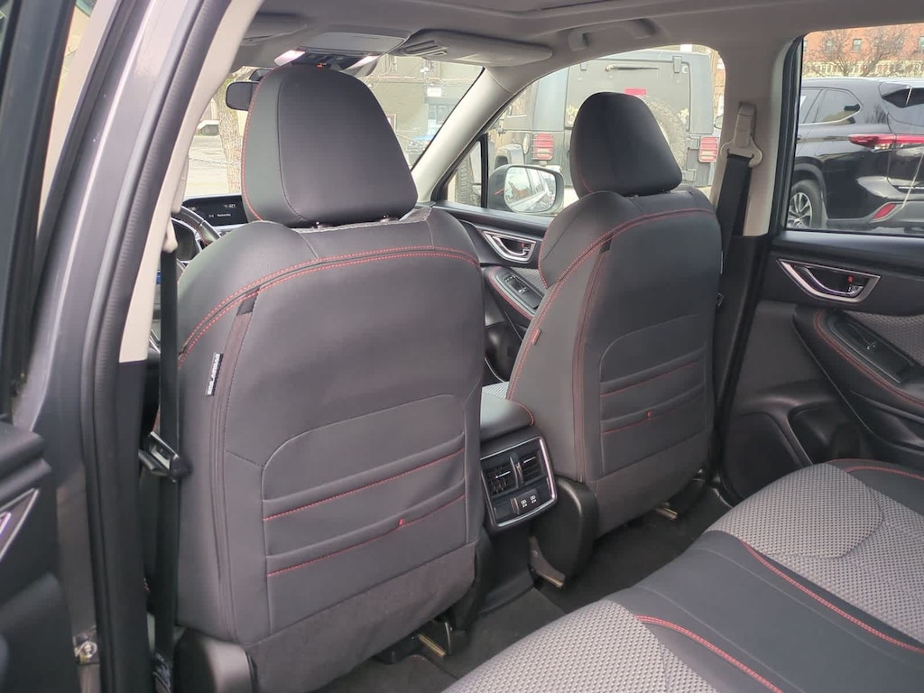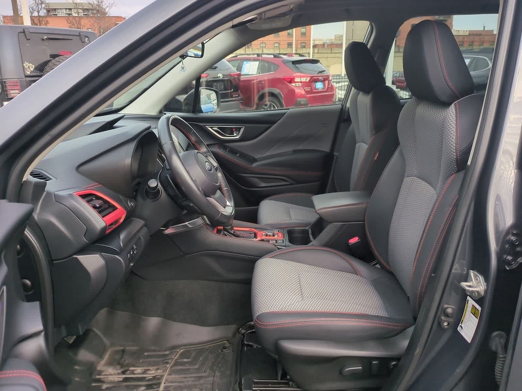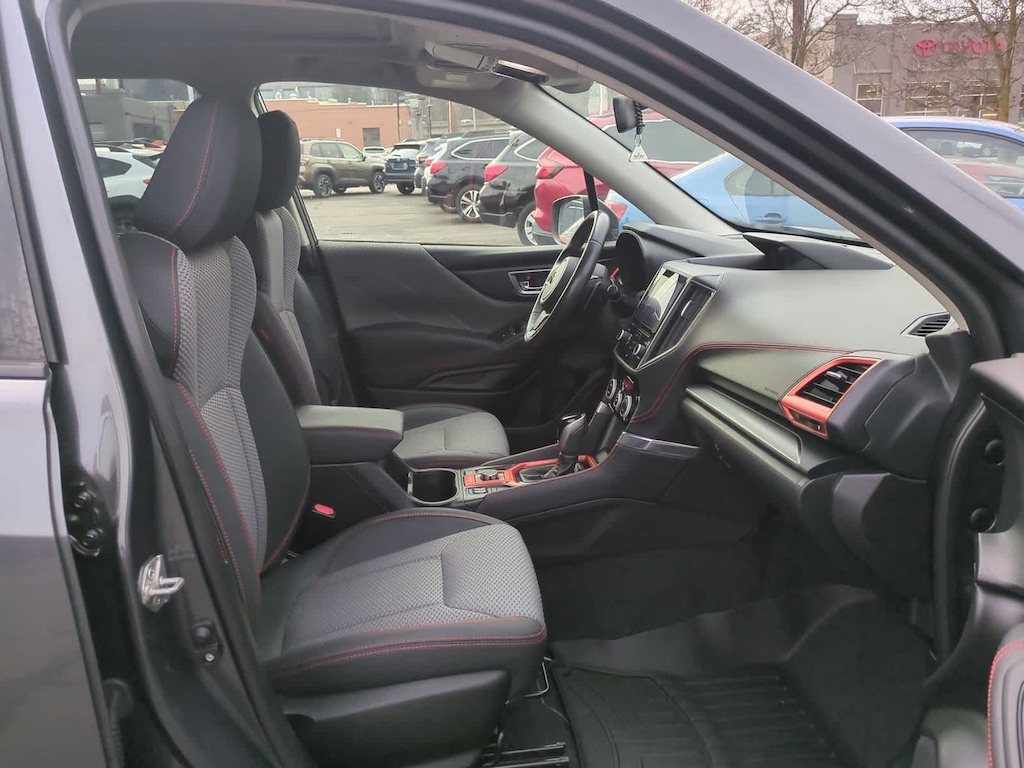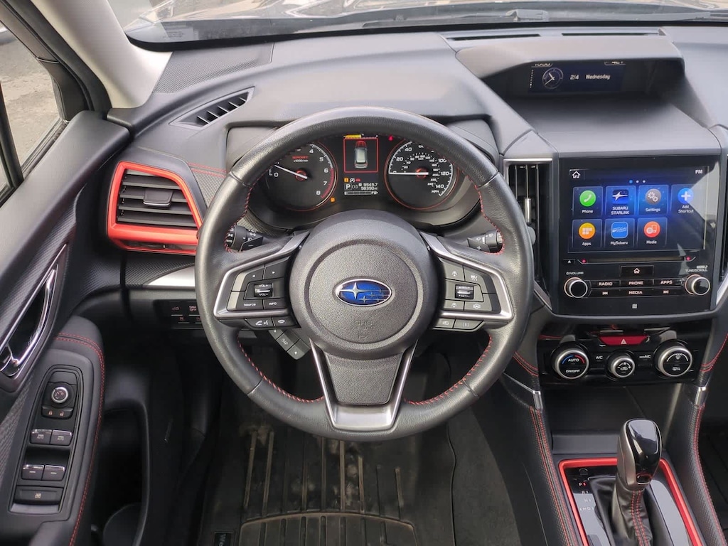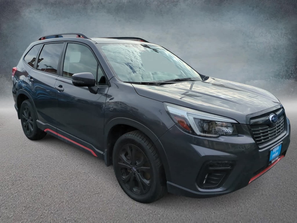 CARFAX One-Owner. Magnetite Gray Metallic 2021 Subaru Forester Sport AWD Lineartronic CVT 2.5L 4-Cylinder DOHC 16V VVT 3.70 Axle Ratio, 4-Wheel Disc Brakes, 6 Speakers, ABS brakes, Air Conditioning, Alloy wheels, AM/FM radio: SiriusXM, Audio System & Reverse Auto Brake & Power Rr Gate, Auto High-beam Headlights, Automatic temperature control, Brake assist, Bumpers: body-color, CD player, Driver door bin, Driver vanity mirror, Dual front impact airbags, Dual front side impact airbags, Electronic Stability Control, Emergency communication system: STARLINK Safety and Security (Subscription Required), Exterior Parking Camera Rear, Four wheel independent suspension, Front anti-roll bar, Front Bucket Seats, Front Center Armrest, Front fog lights, Front reading lights, Fully automatic headlights, harman kardon 576W Amp & Speaker System, Heated door mirrors, Heated Front Bucket Seats, Heated front seats, Illuminated entry, Knee airbag, Leather Shift Knob, Low tire pressure warning, Occupant sensing airbag, Outside temperature display, Overhead airbag, Overhead console, Paddle-Shift Control Switches, Panic alarm, Passenger door bin, Passenger vanity mirror, Power door mirrors, Power driver seat, Power moonroof: Panoramic, Power Rear Gate w/Automatic Close & Height Memory, Power steering, Power windows, Radio data system, Radio: Subaru Starlink 6.5 Multimedia Plus System, Radio: Subaru Starlink 8.0 Multimedia Plus System, Rear anti-roll bar, Rear seat center armrest, Rear window defroster, Rear window wiper, Remote keyless entry, Reverse Automatic Braking System (RAB), Roof rack: rails only, Security system, Speed control, Speed-sensing steering, Split folding rear seat, Spoiler, Sport Cloth Upholstery, STARLINK/Apple CarPlay/Android Auto, Steering wheel mounted audio controls, Tachometer, Telescoping steering wheel, Tilt steering wheel, Traction control, Trip computer, Turn signal indicator mirrors, Variably intermittent wipers, Wheels: 18 x 7.0J Black Finish Aluminum Alloy.