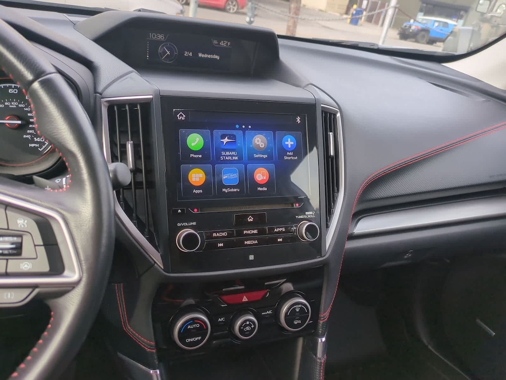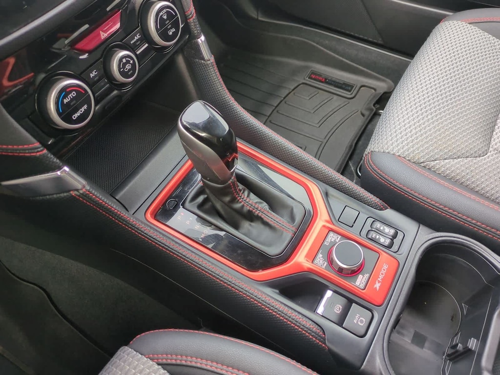 Inside, the Forester Sport blends utility with comfort: Sport-cloth interior with orange accents, heated front seats, panoramic moonroof, power driver seat, STARLINK infotainment with Apple CarPlay/Android Auto, Harman Kardon premium audio, and Power Rear Gate for easy loading. Subarus driver-assist and safety tech adds peace of mind with EyeSight features, Reverse Automatic Braking, rear camera, stability control, and advanced airbag protection.