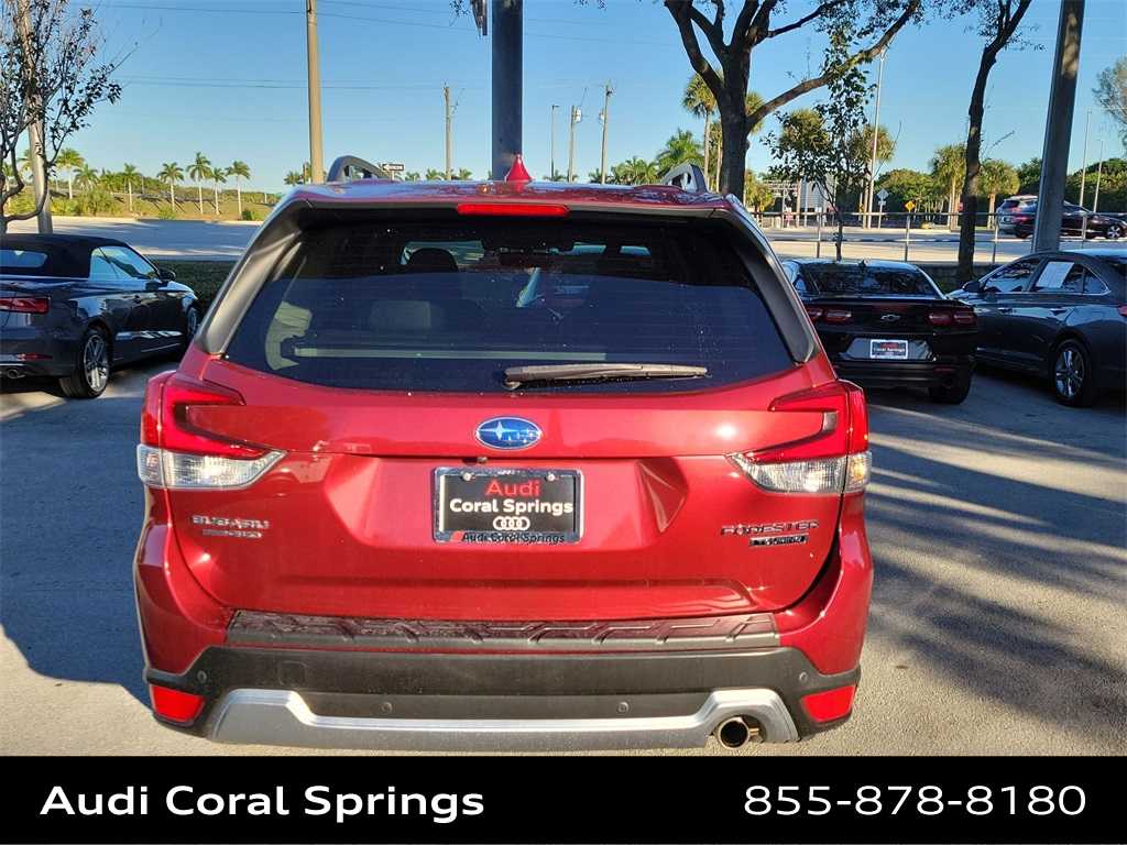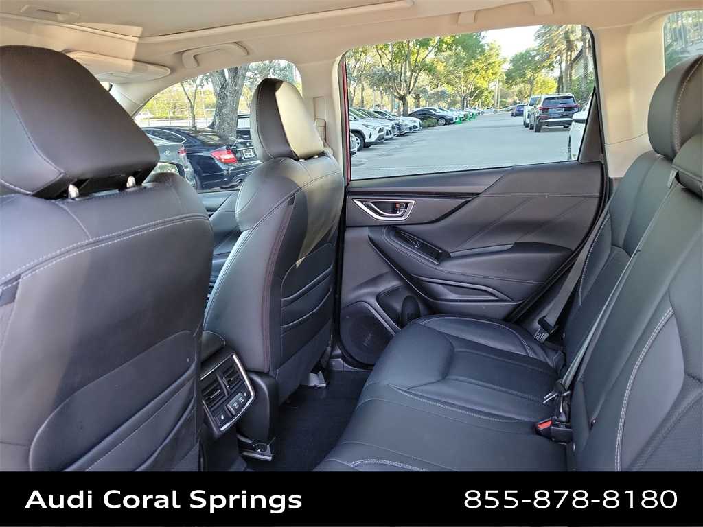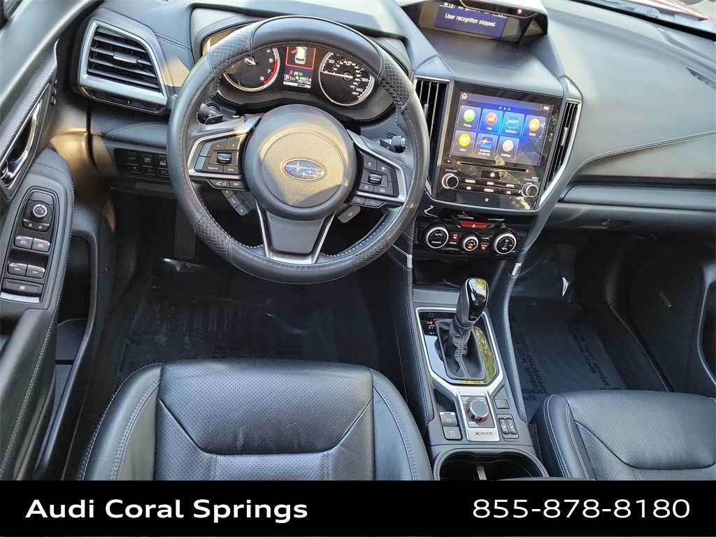 2021 Subaru Forester Touring Forester Touring, AWD, Crimson Red Pearl, Black w/Perforated Leather-Trimmed Upholstery, harman kardon 576W Amp & Speaker System, Heated Front Bucket Seats, Navigation System, Power Liftgate, Power moonroof: Panoramic, Premium audio system: harman/kardon.