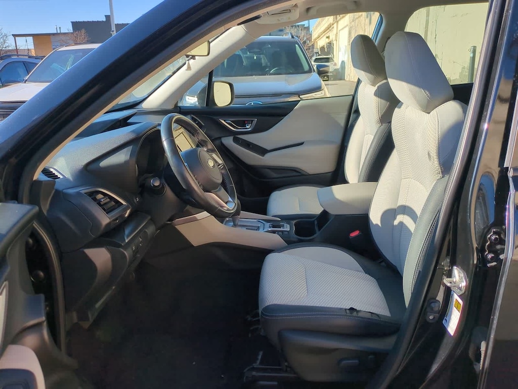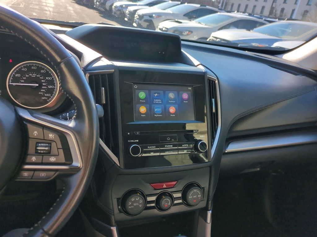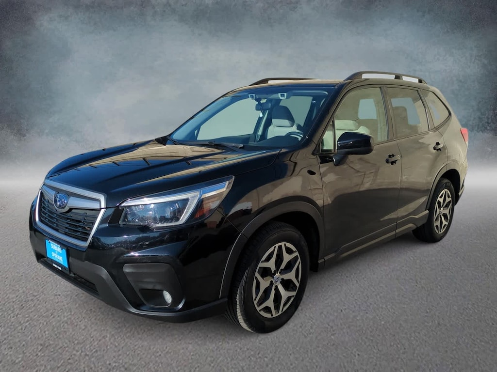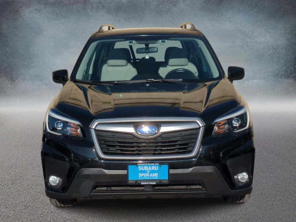 Crystal Black Silica 2021 Subaru Forester Premium AWD Lineartronic CVT 2.5L 4-Cylinder DOHC 16V VVT 3.70 Axle Ratio, 4-Wheel Disc Brakes, 6 Speakers, ABS brakes, Air Conditioning, Alloy wheels, AM/FM radio: SiriusXM, Auto High-beam Headlights, Automatic temperature control, Brake assist, Bumpers: body-color, CD player, Cloth Upholstery, Driver door bin, Driver vanity mirror, Dual front impact airbags, Dual front side impact airbags, Electronic Stability Control, Emergency communication system: STARLINK Safety and Security (Subscription Required), Exterior Parking Camera Rear, Four wheel independent suspension, Front anti-roll bar, Front Bucket Seats, Front Center Armrest, Front fog lights, Front reading lights, Fully automatic headlights, Heated door mirrors, Heated Front Bucket Seats, Heated front seats, Illuminated entry, Knee airbag, Low tire pressure warning, Occupant sensing airbag, Outside temperature display, Overhead airbag, Overhead console, Panic alarm, Passenger door bin, Passenger vanity mirror, Power door mirrors, Power driver seat, Power moonroof: Panoramic, Power steering, Power windows, Radio data system, Radio: Subaru Starlink 6.5 Multimedia Plus System, Rear anti-roll bar, Rear seat center armrest, Rear window defroster, Rear window wiper, Remote keyless entry, Roof rack: rails only, Security system, Speed control, Speed-sensing steering, Split folding rear seat, Spoiler, Standard Model, STARLINK/Apple CarPlay/Android Auto, Steering wheel mounted audio controls, Tachometer, Telescoping steering wheel, Tilt steering wheel, Traction control, Trip computer, Variably intermittent wipers, Wheels: 17 x 7.0J Black Machine Finish Alloy.