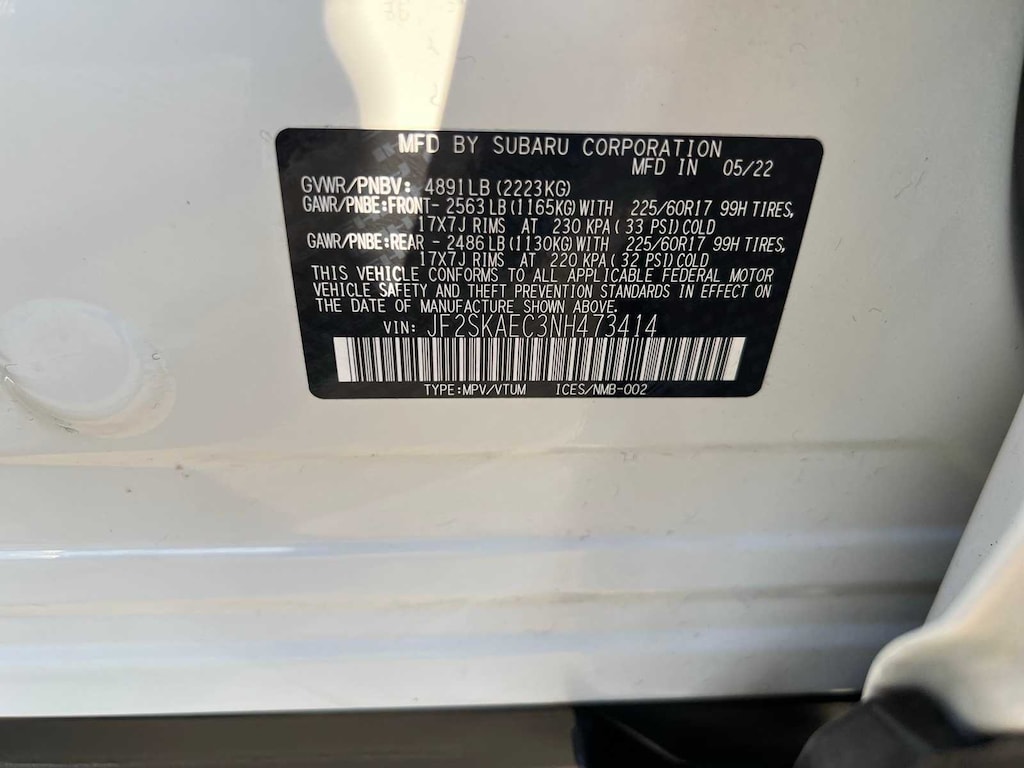 Crystal White Pearl 2022 Subaru Forester Premium AWD Lineartronic CVT 2.5L 4-Cylinder DOHC 16V FRESH ENGINE and CABIN FILTERS, FRESH OIL CHANGE, 138 point Lithia inspected, DETAILED INTERIOR AND EXTERIOR FOR DELIVERY, CERTIFIED BY CARFAX - NO ACCIDENTS, CERTIFIED BY CARFAX - ONE OWNER, Multi Point Safety and Mechanical Inspection Performed by Certified Technician, 4-Wheel Disc Brakes, 6 Speakers, ABS brakes, Air Conditioning, All-Weather Floor Liners, AM/FM radio: SiriusXM, Anti-whiplash front head restraints, Auto High-beam Headlights, Automatic temperature control, Blind Spot Detection (BSD), Blind Spot Detection w/RCTA & Power Rear Gate, Brake assist, Drivers Seatback Divided Pocket, Dual USB Charge Ports, Electronic Stability Control, Emergency communication system: STARLINK Safety and Security (Subscription Required), Exterior Parking Camera Rear, EyeSight System, Four wheel independent suspension, Front anti-roll bar, Front Bucket Seats, Front Center Armrest, Fully automatic headlights, Heated door mirrors, Heated Front Bucket Seats, Heated front seats, Multi-Function High Grade Display, Outside temperature display, Power door mirrors, Power driver seat, Power moonroof: Panoramic, Power Rear Gate, Power steering, Power windows, Premium Cloth Upholstery, Radio data system, Radio: Subaru Starlink 6.5 Multimedia Plus System, Rear anti-roll bar, Remote keyless entry, Roof rack: rails only, Speed control, Speed-sensing steering, Split folding rear seat, Spoiler, STARLINK/Apple CarPlay/Android Auto, Steering wheel mounted audio controls, Telescoping steering wheel, Tilt steering wheel, Traction control.