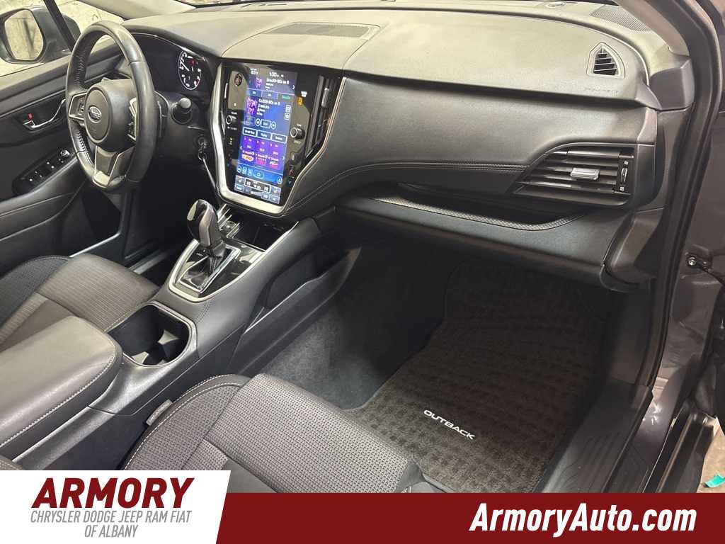 Clean CARFAX. Magnetite Gray Metallic 2022 Subaru Outback Premium AWD CVT Lineartronic 2.5L 4-Cylinder DOHC 16V AM/FM radio: SiriusXM, Auto High-beam Headlights, Cloth Upholstery, Dual front impact airbags, Dual front side impact airbags, Front dual zone A/C, Heated front seats, Knee airbag, Overhead airbag, Power driver seat, STARLINK/Apple CarPlay/Android Auto, Telescoping steering wheel.