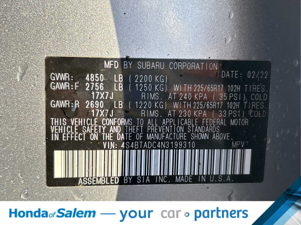 Rear Cross Traffic Alert (RCTA), audible vehicle detection warning, Blind Spot Detection (BSD), Keyless Access w/Push Button Start, PIN code access, Hands-Free Power Rear Gate, automatic close and height memory, Auto-Dimming Exterior Mirror w/Approach Light, Auto-Dimming Mirror w/Compass & HomeLink. Subaru Premium with Ice Silver Metallic exterior and Slate Black interior features a 4 Cylinder Engine with 182 HP at 5800 RPM*.