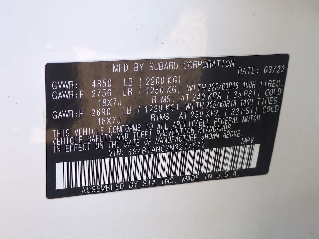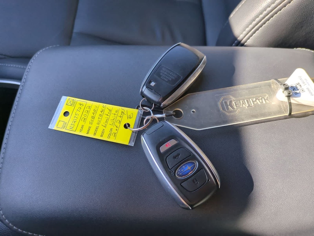 CARFAX One-Owner. Clean CARFAX. Crystal White Pearl 2022 Subaru Outback Limited AWD CVT Lineartronic 2.5L 4-Cylinder DOHC 16V 12 Speakers, 3.90 Axle Ratio, 4-Wheel Disc Brakes, ABS brakes, Air Conditioning, Alloy wheels, AM/FM radio: SiriusXM, Auto High-beam Headlights, Auto-Dimming Exterior Mirror w/Approach Light, Auto-dimming Rear-View mirror, Automatic temperature control, Brake assist, Bumpers: body-color, Compass, Crystal White Pearl Body Side Molding, Driver door bin, Driver vanity mirror, DriverFocus (Driver Monitoring System), Dual front impact airbags, Dual front side impact airbags, Electronic Stability Control, Emergency communication system: STARLINK Safety and Security (Subscription Required), Exterior Parking Camera Rear, Four wheel independent suspension, Front anti-roll bar, Front Bucket Seats, Front Center Armrest w/Storage, Front dual zone A/C, Front fog lights, Front reading lights, Fully automatic headlights, Garage door transmitter: HomeLink, harman/kardonî Speakers, Heated door mirrors, Heated Front Bucket Seats, Heated front seats, Heated rear seats, Heated Steering Wheel, Illuminated entry, Knee airbag, Leather steering wheel, Low tire pressure warning, Memory seat, Occupant sensing airbag, Outside temperature display, Overhead airbag, Overhead console, Panic alarm, Passenger door bin, Passenger vanity mirror, Perforated Leather-Trimmed Upholstery, Power door mirrors, Power driver seat, Power Liftgate, Power Moonroof, Power Moonroof & HSW & Navigation System, Power passenger seat, Power steering, Power windows, Radio: Subaru STARLINK 11.6 Multimedia Nav System, Radio: Subaru STARLINK 11.6 Multimedia Plus Sys, Rear anti-roll bar, Rear Bumper Cover, Rear Seat Back Protector, Rear seat center armrest, Rear window defroster, Rear window wiper, Remote keyless entry, Roof rack, Security system, Speed control, Speed-sensing steering, Splash Guards, Split folding rear seat, Spoiler, STARLINK/Apple CarPlay/Android Auto, Steering wheel mounted audio controls, Steering Wheel Paddle Shift Control Switches, Tachometer, Telescoping steering wheel, Tilt steering wheel, Traction control, Trip computer, Turn signal indicator mirrors, Variably intermittent wipers, Wheels: 18 x 7J Black Aluminum Alloy, Wireless Charger.
