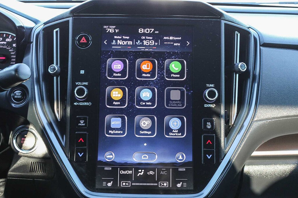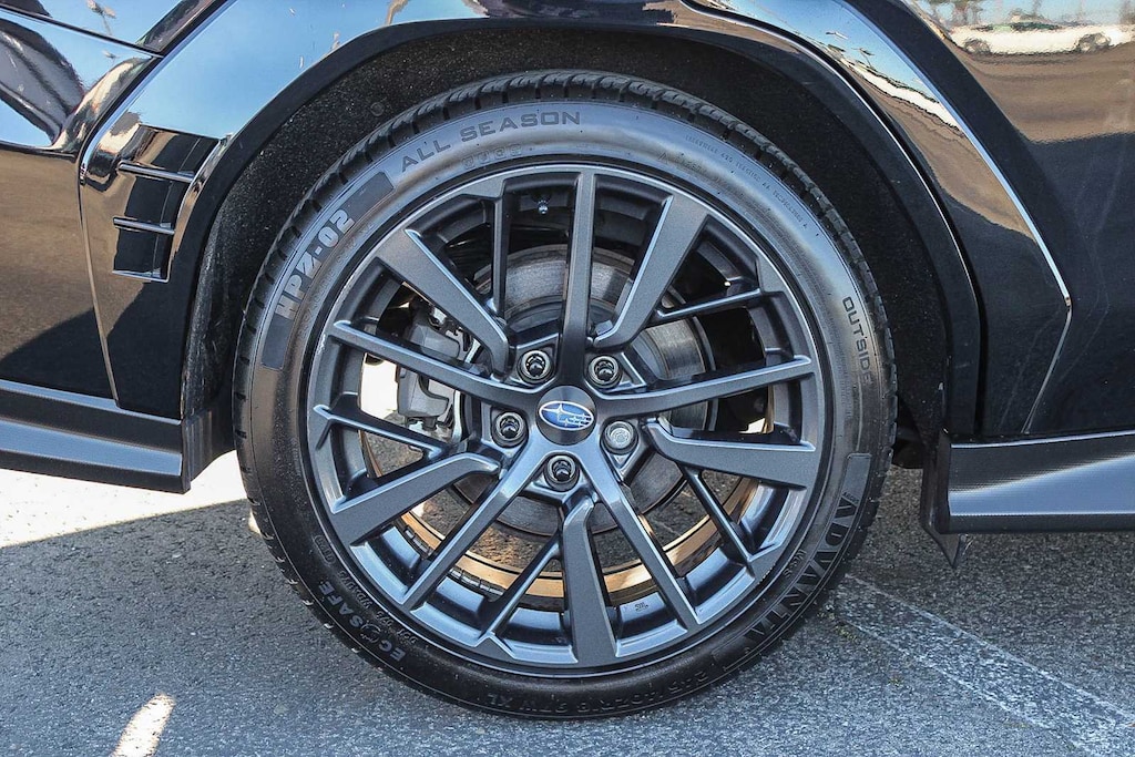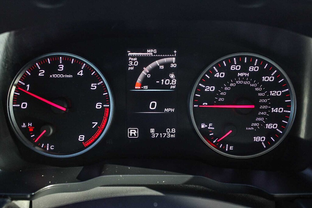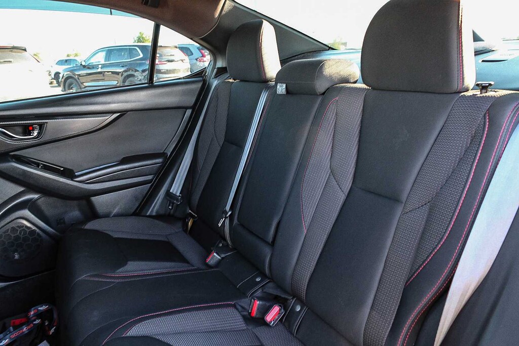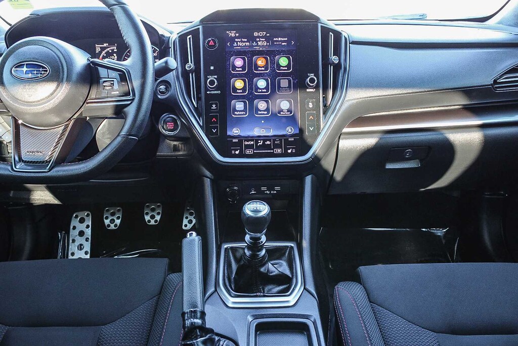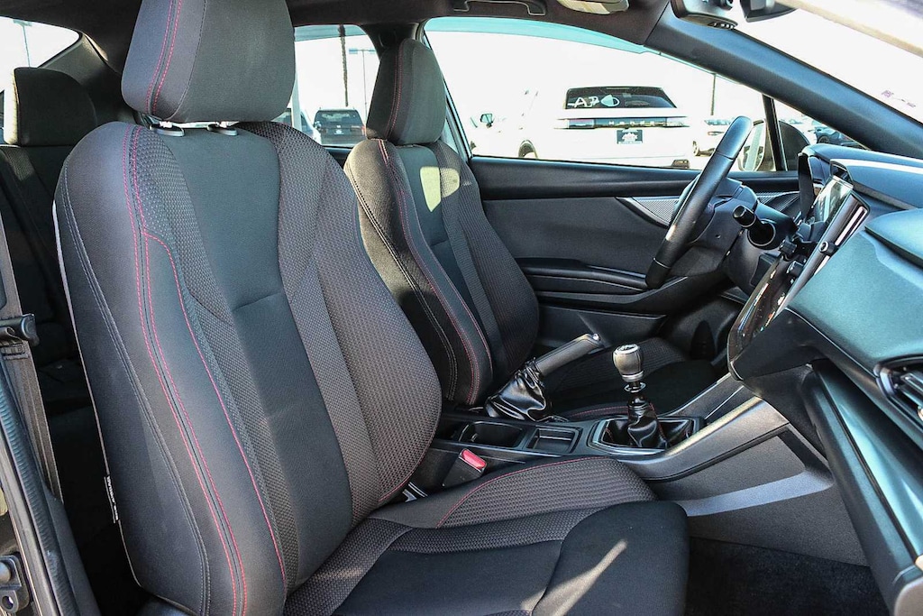 harman kardon & Moonroof (harman/kardon Speaker System and Power Tilt Up Moonroof), Popular Package #1 (Auto-Dimming Exterior Mirror w/Approach Light, Auto-Dimming Mirror w/Compass & HomeLink, Cargo Tray, LED Upgrade - Map & Dome Lights, and Side Sill Plates - Illuminated), 4-Wheel Disc Brakes, 6 Speakers, ABS brakes, Air Conditioning, Alloy wheels, AM/FM radio: SiriusXM, Auto High-beam Headlights, Auto-dimming Rear-View mirror, Automatic temperature control, Brake assist, Bumpers: body-color, Cloth Upholstery w/Red Stitching, Driver door bin, Driver vanity mirror, Dual front impact airbags, Dual front side impact airbags, Electronic Stability Control, Emergency communication system: STARLINK Safety and Security (Subscription Required), Exterior Parking Camera Rear, Four wheel independent suspension, Front anti-roll bar, Front Bucket Seats, Front Center Armrest, Front dual zone A/C, Front fog lights, Front reading lights, Fully automatic headlights, Heated door mirrors, Heated front seats, Illuminated entry, Knee airbag, Leather Shift Knob, Leather steering wheel, Low tire pressure warning, Occupant sensing airbag, Outside temperature display, Overhead airbag, Overhead console, Panic alarm, Passenger door bin, Passenger vanity mirror, Performance Design Heated Front Bucket Seats, Power door mirrors, Power steering, Power windows, Radio data system, Radio: Subaru STARLINK 11.6 Multimedia Plus Sys, Rear anti-roll bar, Rear seat center armrest, Rear Seatback Protector, Rear window defroster, Remote keyless entry, Security system, Speed control, Speed-sensing steering, Split folding rear seat, Spoiler, Sport steering wheel, STARLINK/Apple CarPlay/Android Auto, Steering wheel mounted audio controls, STI Short Throw Shifter (WRX), Sunshade - Windshield, Tachometer, Telescoping steering wheel, Tilt steering wheel, Traction control, Trip computer, Variably intermittent wipers, and Wheels: 18 x 8.5 Dark Gray Finish Alum Alloy. 2.4L DOHC 6-Speed Manual AWD