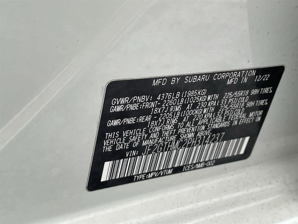 - JF2GTHMC2PH314237
