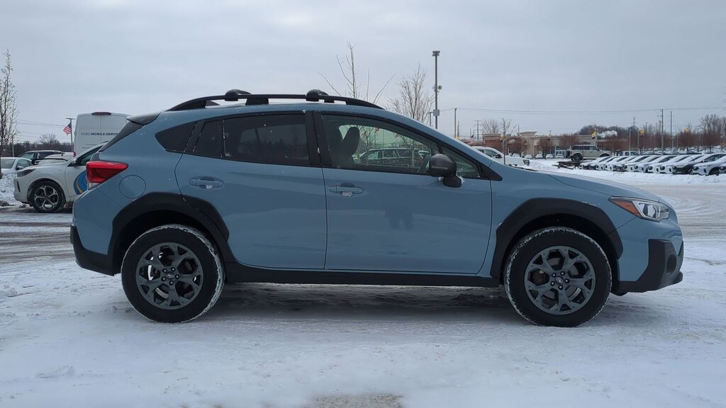 Clean CARFAX. 2023 Subaru Crosstrek Sport Is nicely equipped with Moonroof & BSD w/RCTA & 8.0" Multimedia Plus Audio (Blind Spot Detection w/Rear Cross-Traffic Alert, Power Moonroof, and Radio: Subaru STARLINK 8.0" Multimedia Plus System), 3.70 Axle Ratio, 4-Wheel Disc Brakes, 6 Speakers, ABS brakes, Aero Crossbar Set, Air Conditioning, Alloy wheels, AM/FM radio: SiriusXM, Anti-whiplash front head restraints, Auto-Dimming Mirror w/Compass & HomeLink, Automatic temperature control, Brake assist, Bumpers: body-color, Cargo Net, CD player, Driver door bin, Driver vanity mirror, Dual front impact airbags, Dual front side impact airbags, Electronic Stability Control, Emergency communication system: STARLINK Safety and Security (Subscription Required), Exterior Parking Camera Rear, Four wheel independent suspension, Front anti-roll bar, Front Bucket Seats, Front Center Armrest, Front fog lights, Front reading lights, Fully automatic headlights, Heated door mirrors, Heated Front Bucket Seats, Heated front seats, Illuminated entry, Knee airbag, Leather Shift Knob, Low tire pressure warning, Map & Dome Lights LED Upgrade, Occupant sensing airbag, Outside temperature display, Overhead airbag, Overhead console, Panic alarm, Passenger door bin, Passenger vanity mirror, Power door mirrors, Power steering, Power windows, Radio data system, Radio: Subaru STARLINK 6.5" Multimedia Plus System, Rear anti-roll bar, Rear Bumper Cover, Rear window defroster, Rear window wiper, Remote keyless entry, Security system, Speed control, Speed-sensing steering, Split folding rear seat, Spoiler, STARLINK/Apple CarPlay/Android Auto, StarTex Upholstery, Steering wheel mounted audio controls, Tachometer, Telescoping steering wheel, Tilt steering wheel, Traction control, Trip computer, Turn signal indicator mirrors, Variably intermittent wipers, and Wheels: 17" x 7.0J Alum Alloy Dark Gray Met Finish.