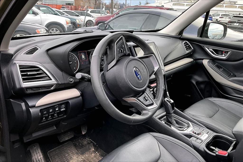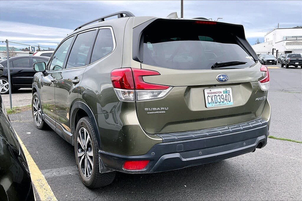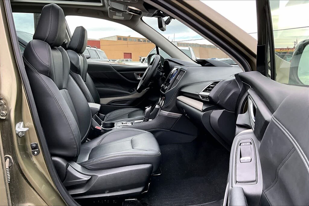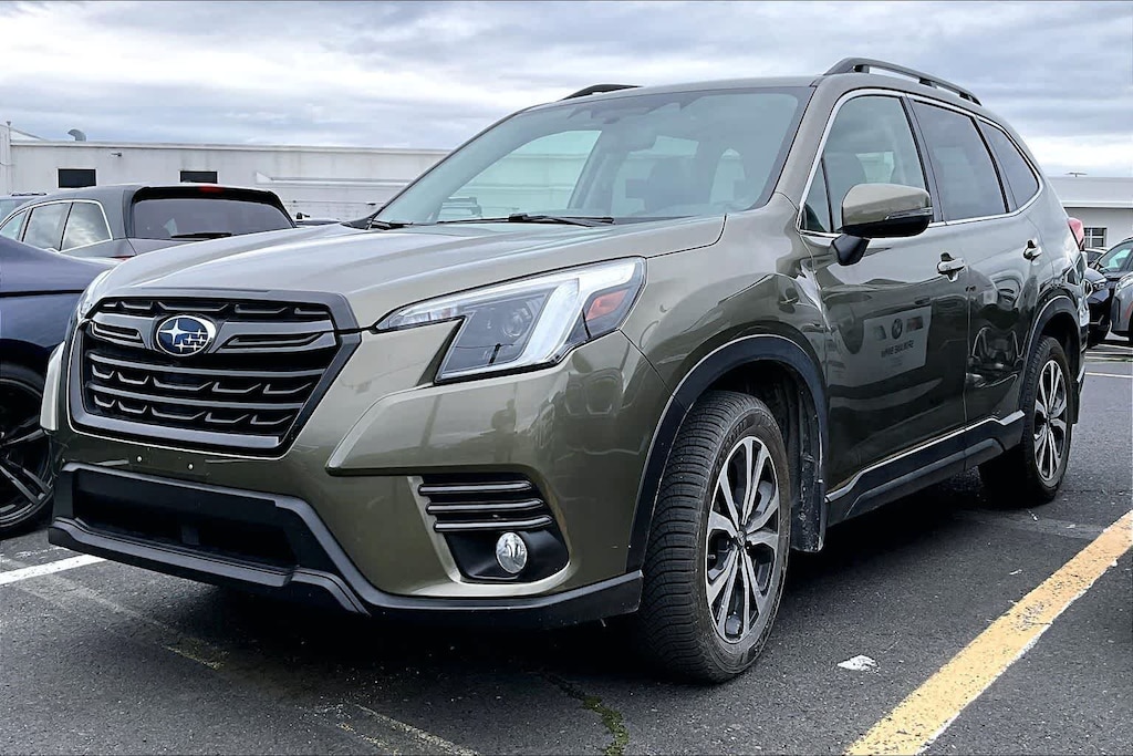 CARFAX One-Owner. Clean CARFAX. Autumn Green Metallic 2023 Subaru Forester Limited AWD Lineartronic CVT 2.5L 4-Cylinder DOHC 16V 3.70 Axle Ratio, 4-Wheel Disc Brakes, 6 Speakers, ABS brakes, Air Conditioning, All-Weather Floor Liners, Alloy wheels, AM/FM radio: SiriusXM, Anti-whiplash front head restraints, Auto High-beam Headlights, Auto-Dimming Mirror w/Compass & HomeLink, Automatic temperature control, Brake assist, Bumpers: body-color, CD player, Driver door bin, Driver vanity mirror, Dual front impact airbags, Dual front side impact airbags, Electronic Stability Control, Emergency communication system: STARLINK Safety and Security (Subscription Required), Exterior Parking Camera Rear, Four wheel independent suspension, Front anti-roll bar, Front Bucket Seats, Front Center Armrest, Front dual zone A/C, Front fog lights, Front reading lights, Fully automatic headlights, harman/kardon 9-Speaker Audio System, Heated door mirrors, Heated Front Bucket Seats, Heated front seats, Heated Steering Wheel, Illuminated entry, Knee airbag, Leather Shift Knob, Low tire pressure warning, Nav & harman/kardon & RAB & Heated Steering Wheel, Navigation System, Occupant sensing airbag, Outside temperature display, Overhead airbag, Overhead console, Panic alarm, Passenger door bin, Passenger vanity mirror, Perforated Leather-Trimmed Upholstery, Power door mirrors, Power driver seat, Power Liftgate, Power moonroof: Panoramic, Power steering, Power windows, Radio data system, Radio: Subaru Starlink 8.0 Multimedia Nav System, Radio: Subaru Starlink 8.0 Multimedia Plus System, Rear anti-roll bar, Rear Bumper Cover, Rear seat center armrest, Rear Seatback Protector, Rear window defroster, Rear window wiper, Remote keyless entry, Reverse Automatic Braking System (RAB), Roof rack: rails only, Security system, Speed control, Speed-sensing steering, Splash Guards, Split folding rear seat, Spoiler, STARLINK/Apple CarPlay/Android Auto, Steering wheel mounted audio controls, Tachometer, Telescoping steering wheel, Tilt steering wheel, Traction control, Trip computer, Turn signal indicator mirrors, Variably intermittent wipers, Wheels: 18 x 7.0 J Black Machine Finish Alloy.
