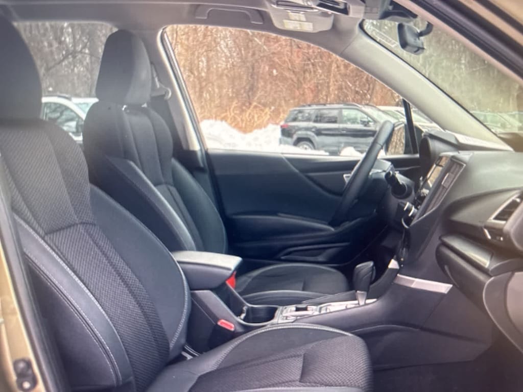 CARFAX One-Owner. Autumn Green Metallic 2023 Subaru Forester Premium AWD Lineartronic CVT 2.5L 4-Cylinder DOHC 16V 3.70 Axle Ratio, 4-Wheel Disc Brakes, 6 Speakers, ABS brakes, Air Conditioning, Alloy wheels, AM/FM radio: SiriusXM, Anti-whiplash front head restraints, Auto High-beam Headlights, Automatic temperature control, Brake assist, Bumpers: body-color, CD player, Driver door bin, Driver vanity mirror, Dual front impact airbags, Dual front side impact airbags, Electronic Stability Control, Emergency communication system: STARLINK Safety and Security (Subscription Required), Exterior Parking Camera Rear, Four wheel independent suspension, Front anti-roll bar, Front Bucket Seats, Front Center Armrest, Front fog lights, Front reading lights, Fully automatic headlights, Heated door mirrors, Heated Front Bucket Seats, Heated front seats, Illuminated entry, Knee airbag, Low tire pressure warning, Occupant sensing airbag, Outside temperature display, Overhead airbag, Overhead console, Panic alarm, Passenger door bin, Passenger vanity mirror, Power door mirrors, Power driver seat, Power moonroof: Panoramic, Power steering, Power windows, Premium Cloth Upholstery, Radio data system, Radio: Subaru Starlink 6.5 Multimedia Plus System, Rear anti-roll bar, Rear seat center armrest, Rear window defroster, Rear window wiper, Remote keyless entry, Roof rack: rails only, Security system, Speed control, Speed-sensing steering, Split folding rear seat, Spoiler, Standard Model, STARLINK/Apple CarPlay/Android Au