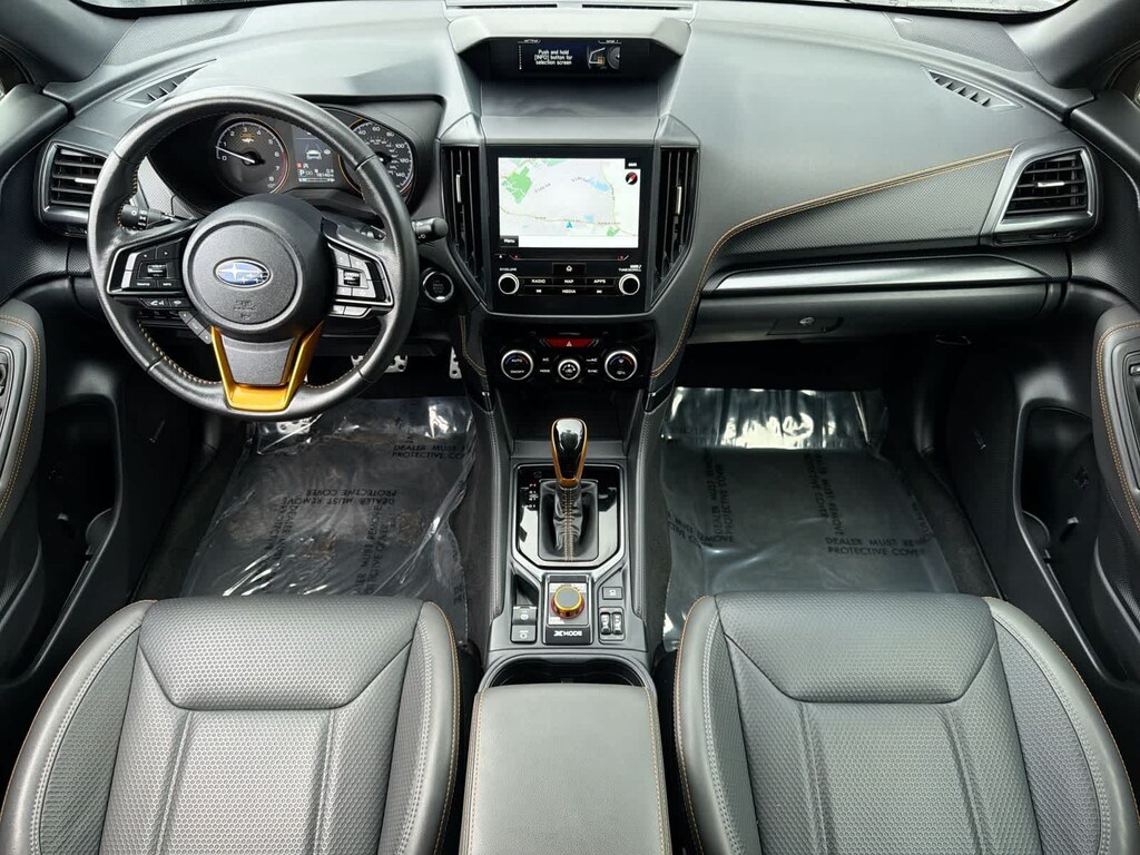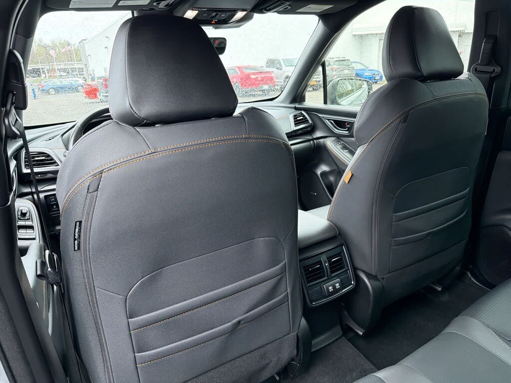 Rugged and refined, the Forester Wilderness features a distinctive exterior design with matte black alloy wheels, a roof rack, and a power rear gate with automatic close and height memory. The interior boasts premium textured StarTex upholstery, heated front seats, and a panoramic power moonroof, creating a comfortable and versatile cabin for all your adventures.