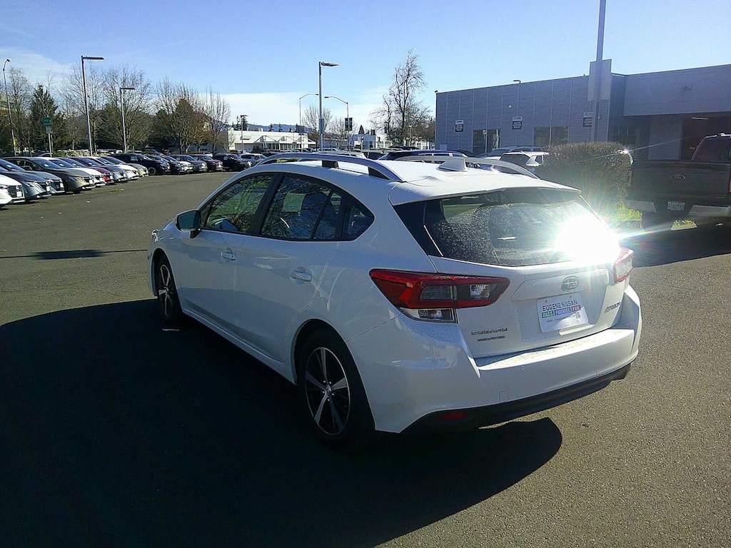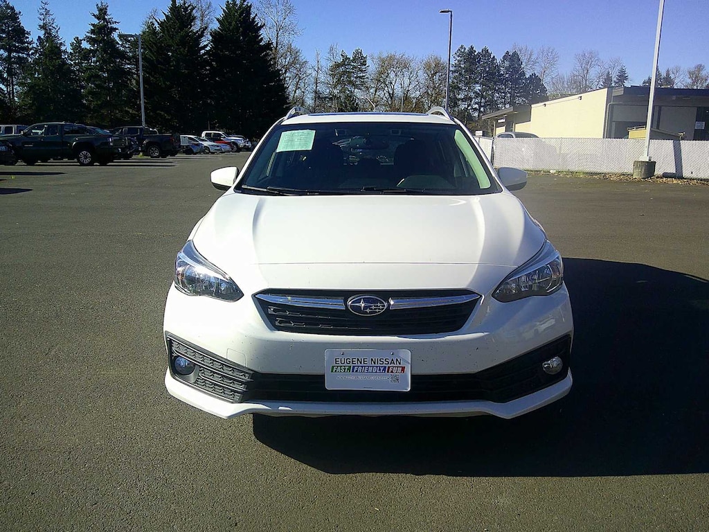BSD/RCTA & MOONRF & KEYLESS ACCESS & PWR DR. SEAT driver and front passenger door unlock/lock sensor door handles, illuminated engine start/stop switch, driver and passenger vanity mirror w/lights, rear gate unlock sensor and lock button, system off switch, rear radar detection sensors, lane change assist, audible vehicle detection warning, laser cut master key, remote transmitter w/removable key, spare remote transmitter w/removable key, shift lever park engagement display, starter override protection, driver and passenger sun visor w/vanity mirror and lights and rear gate unlock/lock sensor, 6-Way Power Drivers Seat, Blind Spot Detection (BSD), Power Moonroof, tilt up and internal retracting w/auto-open/close, laminated, UV and dark tint glass, Rear Cross-Traffic Alert (RCTA) System, POPULAR PACKAGE #3 Auto-Dimming Mirror w/Compass & HomeLink, Part number H501SSG305, All-Weather Floor Liners, Part number J501SFL110, Map & Dome Lights LED Upgrade, Part number H461SFL100, Auto-Dimming Exterior Mirror w/Approach Light, Part number J201SFL003. Subaru Premium with Crystal White Pearl exterior and Black interior features a 4 Cylinder Engine with 152 HP at 6000 RPM*.