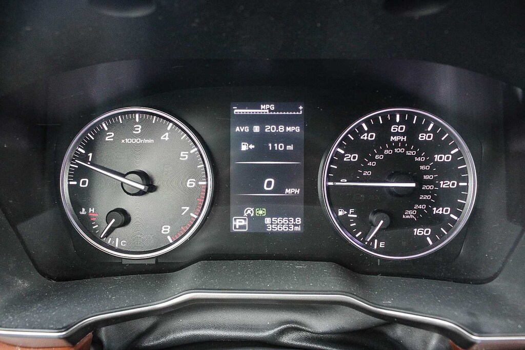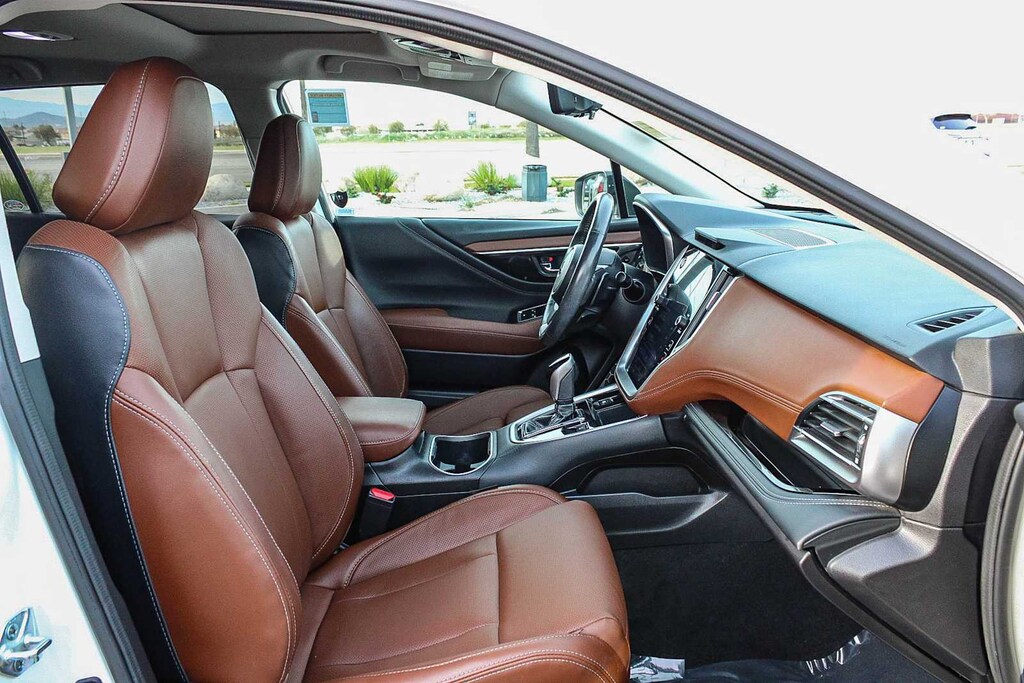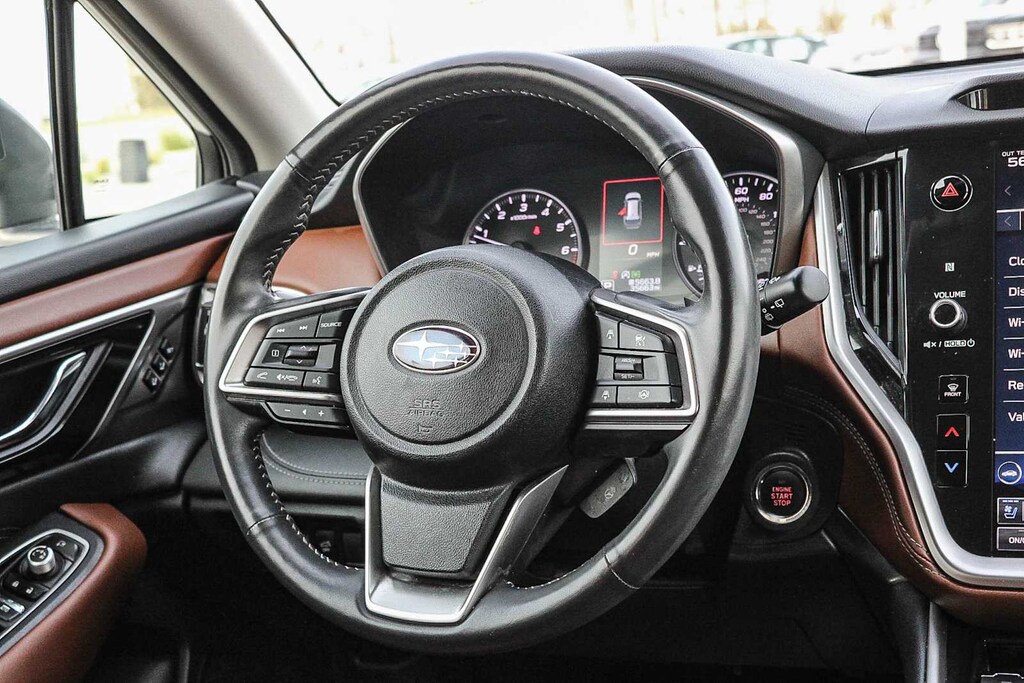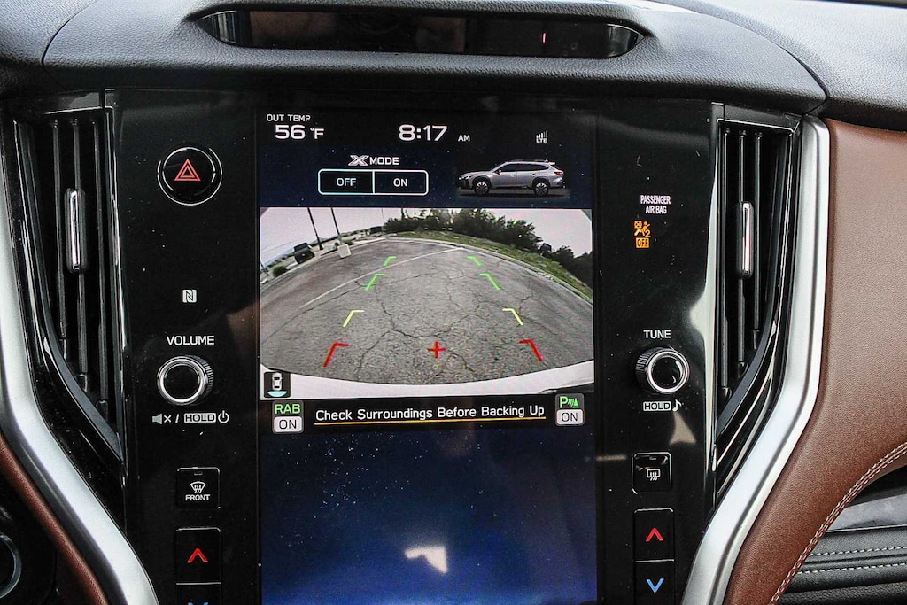 Standard Model, 12 Speakers, 4-Wheel Disc Brakes, 4.111 Axle Ratio, ABS brakes, Air Conditioning, Alloy wheels, AM/FM radio: SiriusXM, Auto High-beam Headlights, Auto-Dimming Exterior Mirror w/Approach Light, Auto-dimming Rear-View mirror, Automatic temperature control, Brake assist, Bumpers: body-color, Compass, Driver door bin, Driver vanity mirror, Dual front impact airbags, Dual front side impact airbags, Electronic Stability Control, Emergency communication system: STARLINK Safety Plus (3-year free trial), Exterior Parking Camera Rear, Four wheel independent suspension, Front anti-roll bar, Front Bucket Seats, Front Center Armrest w/Storage, Front dual zone A/C, Front fog lights, Front reading lights, Fully automatic headlights, Garage door transmitter: HomeLink, harman/kardonî Speakers, Heated & Ventilated Front Bucket Seats, Heated door mirrors, Heated front seats, Heated rear seats, Heated steering wheel, HVAC memory, Illuminated entry, Knee airbag, Leather Shift Knob, Leather steering wheel, Low tire pressure warning, Memory seat, Navigation System, Occupant sensing airbag, Outside temperature display, Overhead airbag, Overhead console, Panic alarm, Passenger door bin, Passenger vanity mirror, Perforated Nappa Leather-Trimmed Upholstery, Power door mirrors, Power driver seat, Power Liftgate, Power moonroof, Power passenger seat, Power steering, Power windows, Radio: Subaru STARLINK 11.6 Multimedia Nav System, Rear anti-roll bar, Rear Seat Back Protector, Rear seat center armrest, Rear window defroster, Rear window wiper, Remote CD player, Remote keyless entry, Roof rack, Security system, Speed control, Speed-sensing steering, Splash Guards, Split folding rear seat, Spoiler, Steering wheel mounted audio controls, Steering Wheel Paddle Shift Control Switches, Tachometer, Telescoping steering wheel, Tilt steering wheel, Traction control, Trip computer, Turn signal indicator mirrors, Variably intermittent wipers, Ventilated front seats, Wheels: 18 x 7J Black Aluminum Alloy, and Windshield Sunshade. 2.4L DOHC CVT Lineartronic AWD