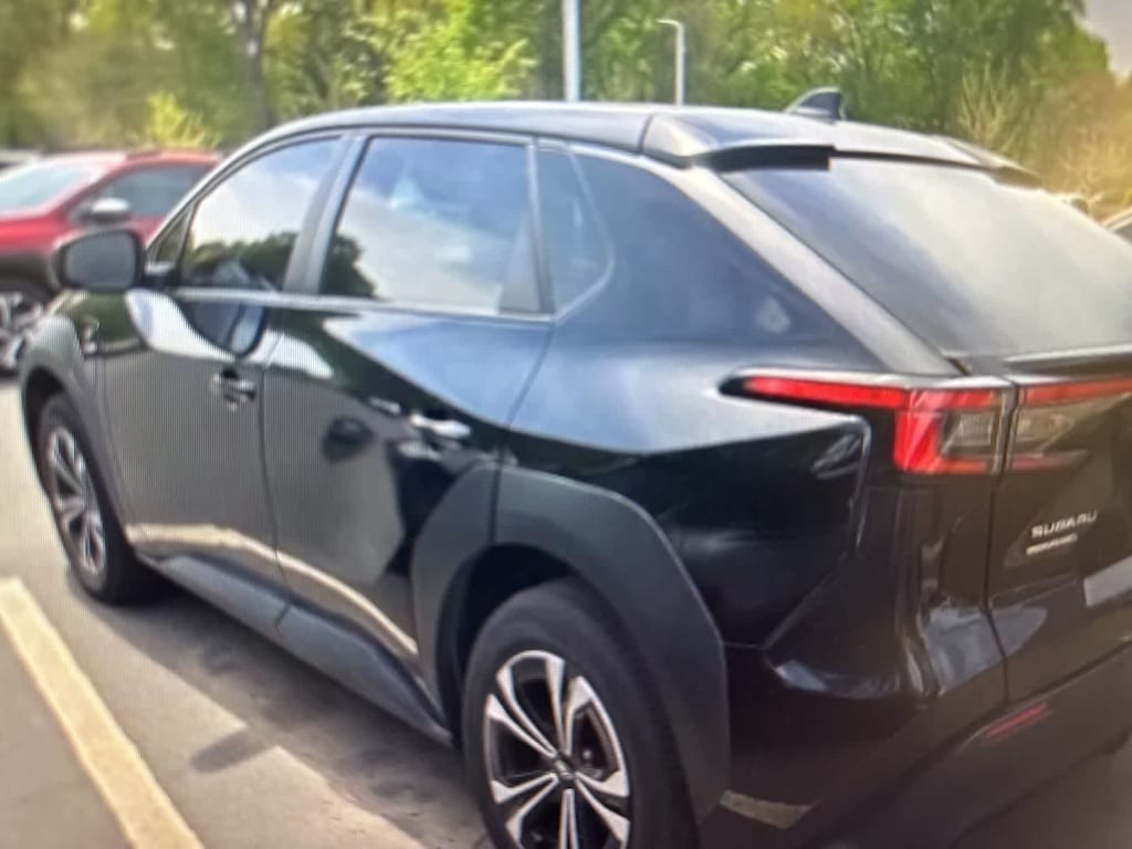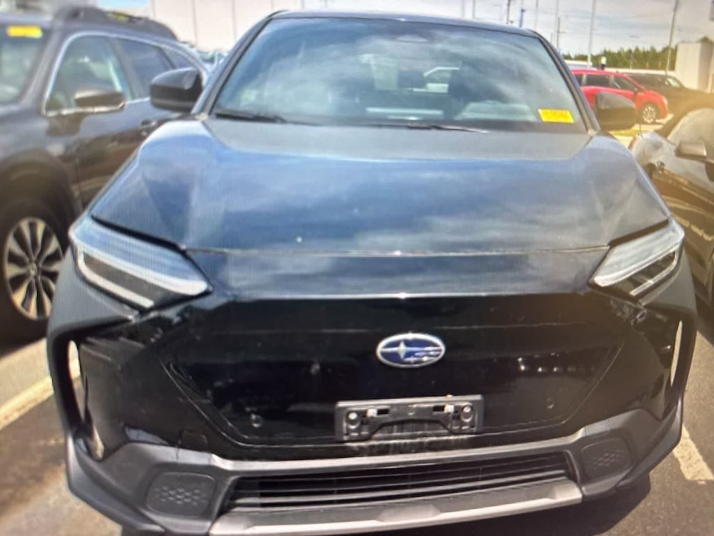 CARFAX One-Owner. Certified. Galactic Black 2023 Subaru Solterra Premium AWD 1-Speed Automatic Electric Motor Subaru Certified Pre-Owned Certified, 13.8 Axle Ratio, 4-Wheel Disc Brakes, 6 Speakers, ABS brakes, Air Conditioning, Alloy wheels, AM/FM radio: SiriusXM, Auto High-beam Headlights, Auto-dimming Rear-View mirror, Automatic temperature control, Brake assist, Bumpers: body-color, Cloth Upholstery, Driver door bin, Driver vanity mirror, Dual front impact airbags, Dual front side impact airbags, Electronic Stability Control, Emergency communication system: Subaru Solterra Connect - Safety Connect (1 year trial included), Exterior Parking Camera Rear, Four wheel independent suspension, Front anti-roll bar, Front Bucket Seats, Front Center Armrest, Front dual zone A/C, Front reading lights, Fully automatic headlights, Heated door mirrors, Heated Front Bucket Seats, Heated front seats, Illuminated entry, Knee airbag, Leather steering wheel, Low tire pressure warning, Occupant sensing airbag, Outside temperature display, Overhead airbag, Overhead console, Panic alarm, Passenger door bin, Passenger vanity mirror, Power door mirrors, Power steering, Power windows, Radio data system, Radio: Subaru Solterra Connect 8.0 Multimedia System, Rear anti-roll bar, Rear reading lights, Rear seat center armrest, Rear window defroster, Remote keyless entry, Security system, Speed control, Speed-sensing steering, Split folding rear seat, Spoiler, Standard Model, Steering wheel mounted audio controls, Telescoping steering wheel, Tilt steering wheel, Traction control, Trip computer, Variably intermittent wipers, Wheels: 18 x 7.5 J Aluminum-Alloy.
