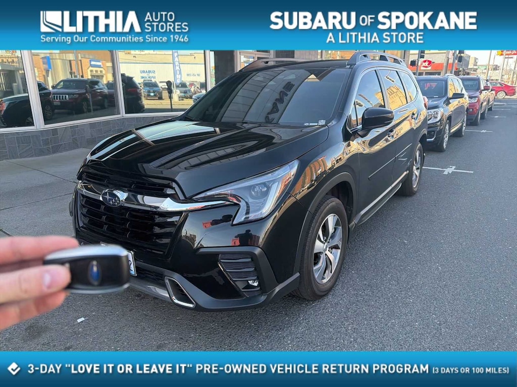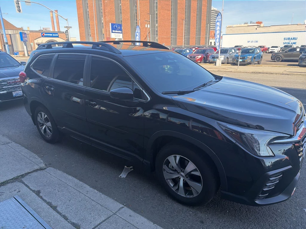 Clean CARFAX. Certified. Crystal Black Silica 2024 Subaru Ascent Premium AWD Lineartronic CVT 2.4L 4-Cylinder DOHC 16V Subaru Certified, 3rd row seats: bench, 4-Wheel Disc Brakes, 6 Speakers, ABS brakes, Air Conditioning, Alloy wheels, AM/FM radio: SiriusXM, Auto High-beam Headlights, Auto-Dimming Rear View Compass Mirror w/HomeLink, Automatic temperature control, Axle Ratio: 4.44, Brake assist, Bumpers: body-color, Convenience Package, Delay-off headlights, Driver door bin, Driver vanity mirror, Dual front impact airbags, Dual front side impact airbags, Electronic Stability Control, Emergency communication system: STARLINK Safety and Security (Subscription Required), Exterior Parking Camera Rear, Four wheel independent suspension, Front anti-roll bar, Front Bucket Seats, Front Center Armrest, Front dual zone A/C, Front reading lights, Fully automatic headlights, Heated door mirrors, Heated Front Bucket Seats, Heated front seats, Illuminated entry, Keyless Access w/Push-Button Start, Knee airbag, Leather Shift Knob, Leather steering wheel, Low tire pressure warning, Occupant sensing airbag, Outside temperature display, Overhead airbag, Overhead console, Panic alarm, Passenger door bin, Passenger vanity mirror, Power door mirrors, Power driver seat, Power Rear Gate w/Automatic Close & Height Memory, Power steering, Power windows, Radio data system, Radio: Subaru STARLINK 11.6 Multimedia Plus System, Rear air conditioning, Rear anti-roll bar, Rear reading lights, Rear window defroster, Rear window wiper, Reclining 3rd row seat, Remote keyless entry, Reverse Automatic Braking (RAB) System, Security system, Speed control, Speed-sensing steering, Spill Resistant Coated Cloth Upholstery, Split folding rear seat, Spoiler, STARLINK/Apple CarPlay/Android Auto, Steering wheel mounted audio controls, Tachometer, Telescoping steering wheel, Tilt steering wheel, Traction control, Trip computer, Turn signal indicator mirrors, Variably intermittent wipers, Wheels: 18 x 7.5 J Gray Alloy w/Machine Finish.