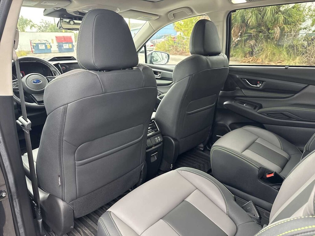 Recent Arrival! BUY WITH CONFIDENCE! WE LOVE TRADES! HASSLE FREE FINANCE PLANS FOR EVERYONE! PLEASE CALL TO ENSURE AVAILABLITY AS OUR INVENTORY CHANGES BY THE HOUR. CARFAX One-Owner. Clean CARFAX. 14 Speakers, 3rd row seats: bench, 3rd Row Sunshade, 4-Wheel Disc Brakes, ABS brakes, Aero Crossbar Set, Air Conditioning, All-Weather Floor Liners, Alloy wheels, AM/FM radio: SiriusXM, Auto High-beam Headlights, Auto-Dimming Exterior Mirror w/Approach Light, Auto-dimming Rear-View mirror, Automatic temperature control, Axle Ratio: 4.44, Brake assist, Bumpers: body-color, Cargo Tray, Compass, Delay-off headlights, Driver door bin, Driver vanity mirror, Dual front impact airbags, Dual front side impact airbags, Electronic Stability Control, Emergency communication system: STARLINK Safety and Security (Subscription Required), Exterior Parking Camera Rear, Four wheel independent suspension, Front anti-roll bar, Front Bucket Seats, Front Center Armrest, Front dual zone A/C, Front fog lights, Front reading lights, Fully automatic headlights, Garage door transmitter: HomeLink, harman/kardonî Speakers, Heated door mirrors, Heated Front Bucket Seats, Heated front seats, Heated rear seats, Heated steering wheel, HVAC memory, Illuminated entry, Knee airbag, Leather Shift Knob, Leather steering wheel, LED Upgrade, Low tire pressure warning, Memory seat, Navigation System, Occupant sensing airbag, Outside temperature display, Overhead airbag, Overhead console, Panic alarm, Passenger door bin, Passenger vanity mirror, Power door mirrors, Power driver seat, Power Liftgate, Power moonroof, Power passenger seat, Power steering, Power windows, Radio data system, Radio: Subaru STARLINK 11.6 Multimedia Nav System, Rear air conditioning, Rear anti-roll bar, Rear reading lights, Rear window defroster, Rear window wiper, Reclining 3rd row seat, Remote keyless entry, Security system, Speed control, Speed-sensing steering, Split folding rear seat, Spoiler, Standard Model, STARLINK/Apple CarPlay/Android Auto, StarTex Upholstery, Steering wheel mounted audio controls, Tachometer, Telescoping steering wheel, Tilt steering wheel, Traction control, Trip computer, Turn signal indicator mirrors, Variably intermittent wipers, Wheels: 20 x 7.5 J Aluminum Alloy w/Black Finish, Windshield Sunshade.