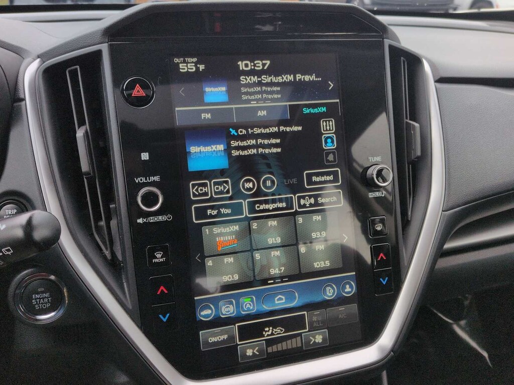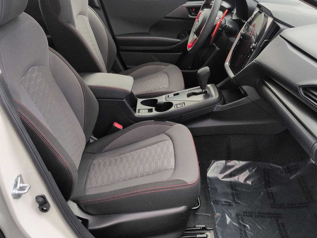 BSD/RCTA & All Weather Pkg & Power Moonroof, 4-Wheel Disc Brakes, 6 Speakers, ABS brakes, Air Conditioning, All-Weather Floor Liners, Alloy wheels, AM/FM radio: SiriusXM, Anti-whiplash front head restraints, Auto High-beam Headlights, Auto-Dimming Mirror w/Compass & HomeLink, Automatic temperature control, Brake assist, Bumpers: body-color, Cargo Tray, Driver door bin, Driver vanity mirror, Dual front impact airbags, Dual front side impact airbags, Electronic Stability Control, Emergency communication system: STARLINK Safety and Security (Subscription Required), Exterior Parking Camera Rear, Four wheel independent suspension, Front anti-roll bar, Front Bucket Seats, Front Center Armrest, Front dual zone A/C, Front fog lights, Front reading lights, Fully automatic headlights, Illuminated entry, Knee airbag, Low tire pressure warning, Occupant sensing airbag, Outside temperature display, Overhead airbag, Overhead console, Panic alarm, Passenger door bin, Passenger vanity mirror, Power door mirrors, Power steering, Power windows, Radio data system, Radio: Subaru STARLINK 11.6 Multimedia Plus Sys, Rear anti-roll bar, Rear Bumper Applique, Rear seat center armrest, Rear Seatback Protector, Rear window defroster, Rear window wiper, Remote keyless entry, Security system, Speed control, Speed-sensing steering, Split folding rear seat, Spoiler, Sport Cloth Upholstery, STARLINK/Apple CarPlay/Android Auto, Steering wheel mounted audio controls, Tachometer, Telescoping steering wheel, Tilt steering wheel, Traction control, Trip computer, Turn signal indicator mirrors, Variably intermittent wipers, and Wheels: 18 x 7.0 Machine Finish J Aluminum-Alloy.