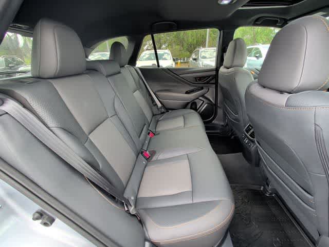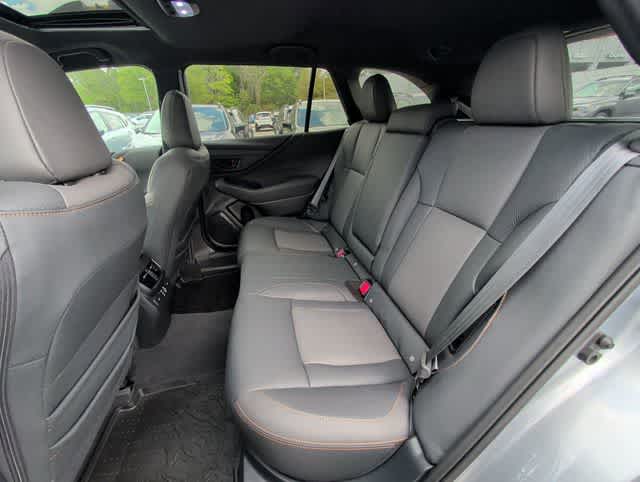 This 2024 Subaru Outback Wilderness in Ice Silver Metallic, features Power Moonroof & Navigation & RAB (Power Moonroof, Radio: Subaru STARLINK 11.6 Multimedia Nav System, and Reverse Automatic Braking (RAB) System), 12 Speakers, 4-Wheel Disc Brakes, 4.444 Axle Ratio, ABS brakes, Air Conditioning, Alloy wheels, AM/FM radio: SiriusXM, Auto High-beam Headlights, Auto-Dimming Exterior Mirror w/Approach Light, Auto-dimming Rear-View mirror, Automatic temperature control, Brake assist, Cargo Net, Compass, Driver door bin, Driver vanity mirror, Dual front impact airbags, Dual front side impact airbags, Electronic Stability Control, Emergency communication system: STARLINK Safety Plus (3-year free trial), Exterior Parking Camera Rear, Four wheel independent suspension, Front anti-roll bar, Front Bucket Seats, Front Center Armrest w/Storage, Front dual zone A/C, Front fog lights, Front reading lights, Fully automatic headlights, Garage door transmitter: HomeLink, harman/kardonî Speakers, Heated door mirrors, Heated Front Bucket Seats, Heated front seats, Heated rear seats, Heated steering wheel, Illuminated entry, Knee airbag, Leather steering wheel, LED Upgrade, Low tire pressure warning, Occupant sensing airbag, Outside temperature display, Overhead airbag, Overhead console, Panic alarm, Passenger door bin, Passenger vanity mirror, Power door mirrors, Power driver seat, Power Liftgate, Power passenger seat, Power steering, Power windows, Radio: Subaru STARLINK 11.6 Multimedia Plus Sys, Rear anti-roll bar, Rear seat center armrest, Rear window defroster, Rear window wiper, Remote keyless entry, Roof rack, Security system, Speed control, Speed-sensing steering, Split folding rear seat, Spoiler, StarTex-Trimmed Upholstery, Steering wheel mounted audio controls, Tachometer, Telescoping steering wheel, Tilt steering wheel, Traction control, Trip computer, Turn signal indicator mirrors, Variably intermittent wipers, Wheels: 17 x 7J Matte Black Aluminum-Alloy, and Windshield Sunshade: BLUETOOTH HANDS FREE, BACK-UP CAMERA, APPLE CAR PLAY, LEATHER, HEATED SEATS, POWER SEATS, NAVIGATION, KEYLESS-GO, ALLOY WHEELS.