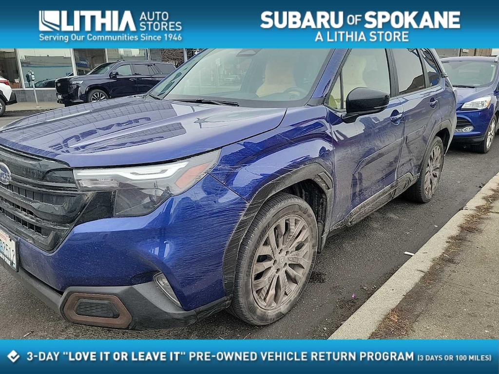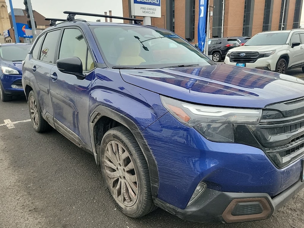 CARFAX One-Owner. Clean CARFAX. Sapphire Blue Pearl 2025 Subaru Forester Sport AWD Lineartronic CVT 2.5L 4-Cylinder DOHC 16V 4-Wheel Disc Brakes, 6 Speakers, ABS brakes, Air Conditioning, All-Weather Floor Liners, Alloy wheels, AM/FM radio: SiriusXM with 360L, Anti-whiplash front head restraints, Auto High-beam Headlights, Automatic temperature control, Body Side Molding - Sapphire Blue Pearl, Brake assist, Bumpers: body-color, Driver door bin, Driver vanity mirror, Dual front impact airbags, Dual front side impact airbags, Electronic Stability Control, Emergency communication system: MySubaru Safety (3-year free trial), Exterior Parking Camera Rear, Four wheel independent suspension, Front anti-roll bar, Front Bucket Seats, Front Center Armrest, Front dual zone A/C, Front fog lights, Front reading lights, Fully automatic headlights, Heated door mirrors, Heated Front Bucket Seats, Heated front seats, Illuminated entry, Knee airbag, Leather steering wheel, LED Upgrade, Low tire pressure warning, Occupant sensing airbag, Outside temperature display, Overhead airbag, Overhead console, Panic alarm, Passenger door bin, Passenger vanity mirror, Power door mirrors, Power driver seat, Power moonroof: Panoramic, Power steering, Power windows, Radio data system, Radio: Subaru 11.6 Multimedia Plus System, Rear anti-roll bar, Rear Bumper Cover, Rear seat center armrest, Rear window defroster, Rear window wiper, Remote keyless entry, Security system, Speed control, Speed-sensing steering, Splash Guards, Split folding rear seat, Spoiler, Sport StarTex Upholstery, Standard Model, Steering wheel mounted audio controls, Tachometer, Telescoping steering wheel, Tilt steering wheel, Traction control, Trip computer, Turn signal indicator mirrors, Variably intermittent wipers, Wheels: 19 x 7.5 J Bronze Finish Aluminum-Alloy.