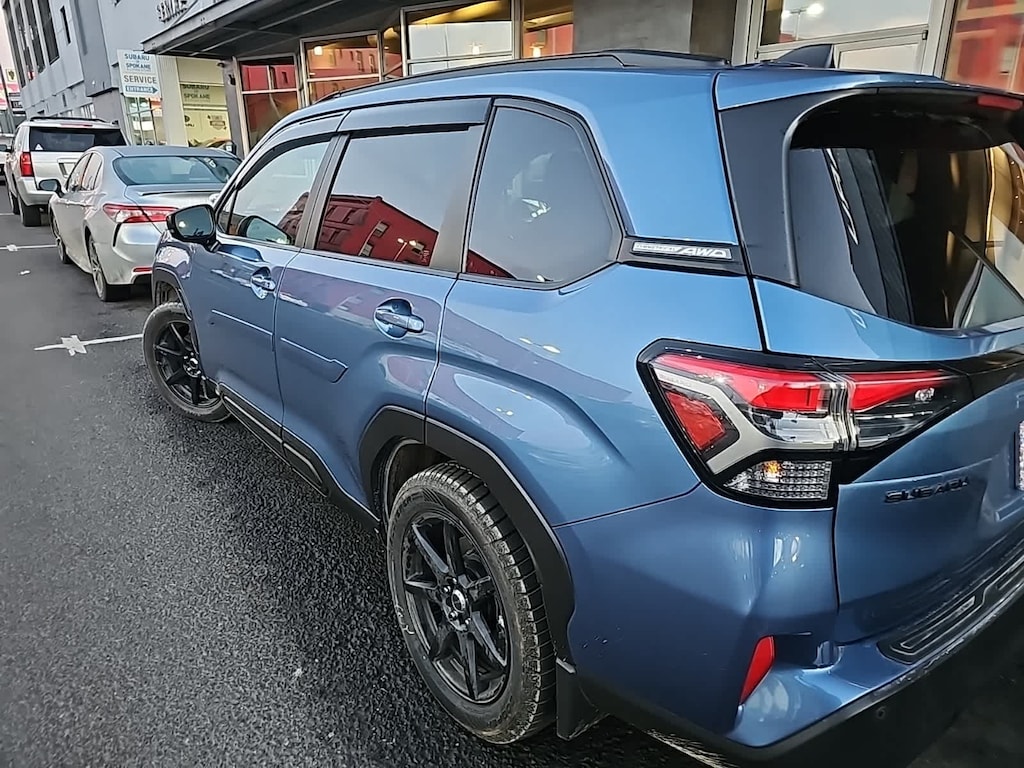 CARFAX One-Owner. Clean CARFAX. Horizon Blue Pearl 2025 Subaru Forester Touring AWD Lineartronic CVT 2.5L 4-Cylinder DOHC 16V 11 Speakers, 4-Wheel Disc Brakes, ABS brakes, Air Conditioning, All-Weather Floor Liners, Alloy wheels, AM/FM radio: SiriusXM with 360L, Anti-whiplash front head restraints, Auto High-beam Headlights, Auto-Dimming Exterior Mirror w/Approach Light, Automatic temperature control, Brake assist, Bumpers: body-color, Driver door bin, Driver vanity mirror, Dual front impact airbags, Dual front side impact airbags, Electronic Stability Control, Emergency communication system: MySubaru Safety (3-year free trial), Exterior Parking Camera Rear, Four wheel independent suspension, Front anti-roll bar, Front Bucket Seats, Front Center Armrest, Front dual zone A/C, Front fog lights, Front reading lights, Fully automatic headlights, harman/kardonî Speakers, Heated & Ventilated Front Bucket Seats, Heated door mirrors, Heated front seats, Heated rear seats, Heated steering wheel, HVAC memory, Illuminated entry, Knee airbag, Leather steering wheel, LED Upgrade, Low tire pressure warning, Memory seat, Navigation System, Occupant sensing airbag, Outside temperature display, Overhead airbag, Overhead console, Panic alarm, Passenger door bin, Passenger vanity mirror, Perforated Leather-Trimmed Upholstery, Power door mirrors, Power driver seat, Power Liftgate, Power moonroof: Panoramic, Power passenger seat, Power steering, Power windows, Radio data system, Radio: Subaru 11.6 Multimedia Navigation System, Rear anti-roll bar, Rear Bumper Cover, Rear seat center armrest, Rear window defroster, Rear window wiper, Remote keyless entry, Security system, Speed control, Speed-sensing steering, Splash Guards, Split folding rear seat, Spoiler, Standard Model, Steering wheel mounted audio controls, Tachometer, Telescoping steering wheel, Tilt steering wheel, Traction control, Trip computer, Turn signal indicator mirrors, Variably intermittent wipers, Ventilated front seats, Wheels: 19 x 7.5 J Dark Gray Aluminum-Alloy.