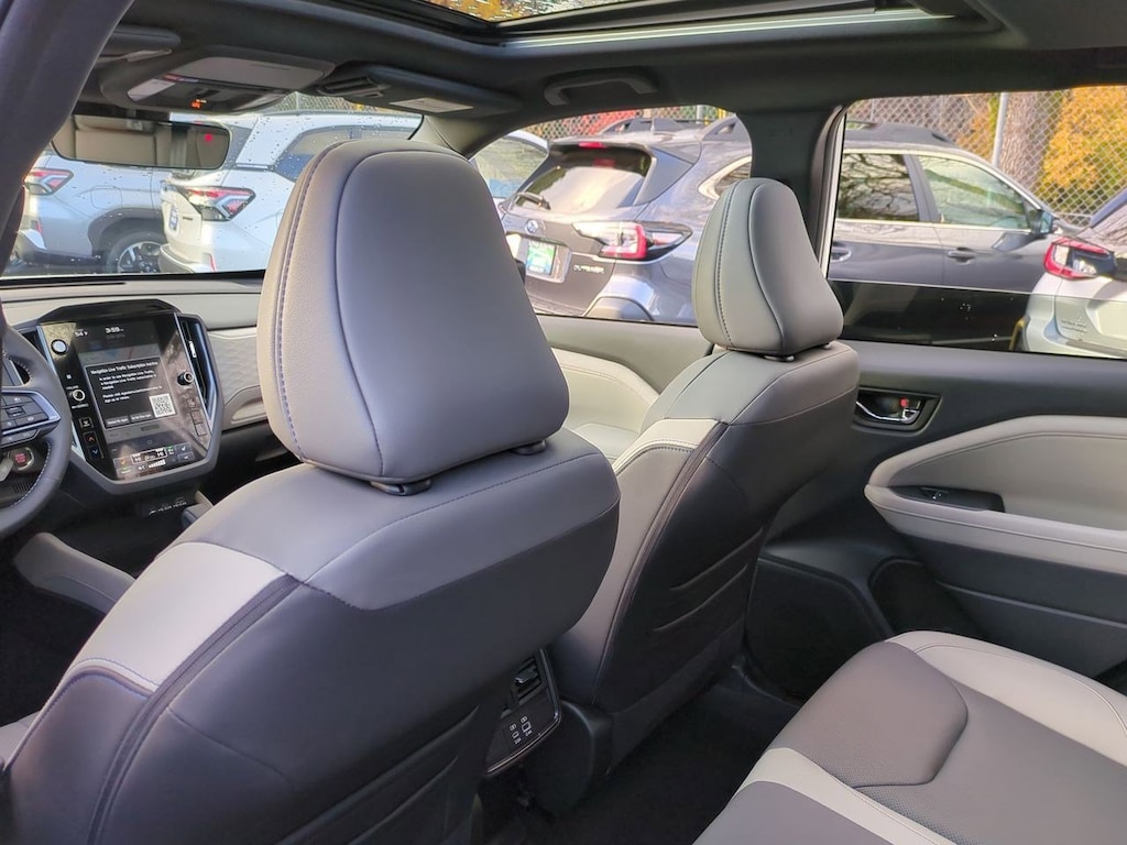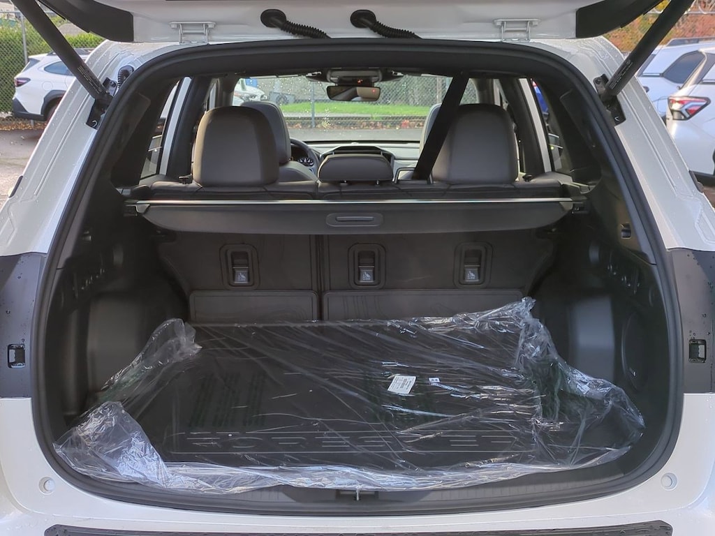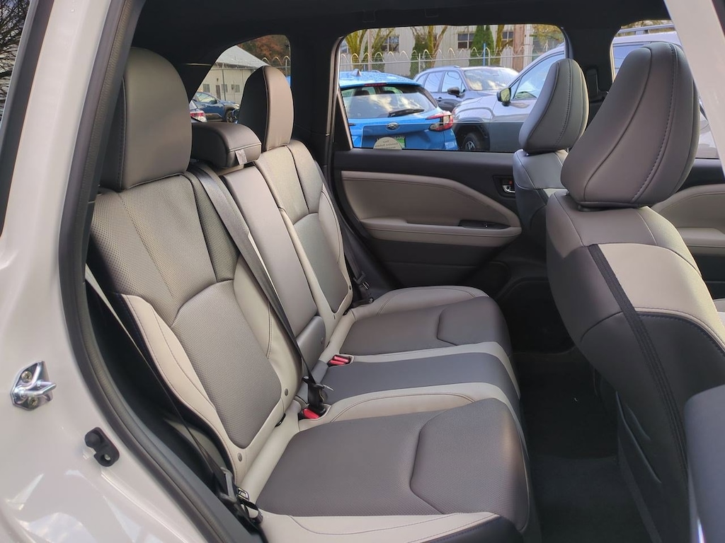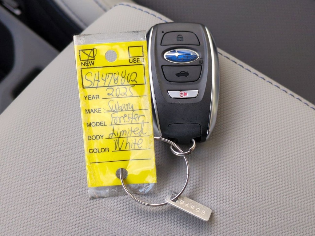 4-Wheel Disc Brakes, 6 Speakers, ABS brakes, Air Conditioning, All-Weather Floor Liners, Alloy wheels, AM/FM radio: SiriusXM with 360L, Anti-whiplash front head restraints, Auto High-beam Headlights, Auto-Dimming Exterior Mirror w/Approach Light, Auto-Dimming Mirror w/Compass & HomeLink, Automatic temperature control, Brake assist, Bumpers: body-color, Cargo Tray, Crossbar Set - Aero, Driver door bin, Driver vanity mirror, Dual front impact airbags, Dual front side impact airbags, Electronic Stability Control, Emergency communication system: MySubaru Safety (3-year free trial), Exterior Parking Camera Rear, Four wheel independent suspension, Front anti-roll bar, Front Bucket Seats, Front Center Armrest, Front dual zone A/C, Front fog lights, Front reading lights, Fully automatic headlights, harman/kardon Audio & Navigation & RAB, Heated door mirrors, Heated Front Bucket Seats, Heated front seats, Heated steering wheel, Illuminated entry, Knee airbag, Leather steering wheel, LED Upgrade, Low tire pressure warning, Occupant sensing airbag, Outside temperature display, Overhead airbag, Overhead console, Panic alarm, Passenger door bin, Passenger vanity mirror, Perforated Leather-Trimmed Upholstery, Popular Package #2, Power door mirrors, Power driver seat, Power Liftgate, Power moonroof: Panoramic, Power passenger seat, Power steering, Power windows, Radio data system, Radio: Subaru 11.6 Multimedia Navigation System, Radio: Subaru 11.6 Multimedia Plus System, Rear anti-roll bar, Rear Bumper Cover, Rear seat center armrest, Rear Seatback Protector, Rear window defroster, Rear window wiper, Remote keyless entry, Reverse Automatic Braking (RAB) System, Security system, Speed control, Speed-sensing steering, Split folding rear seat, Spoiler, Steering wheel mounted audio controls, Tachometer, Telescoping steering wheel, Tilt steering wheel, Traction control, Trip computer, Turn signal indicator mirrors, Variably intermittent wipers, Wheels: 18 x 7.0 J Dark Metallic Aluminum-Alloy. Crystal White Pearl 2025 Subaru Forester Limited AWD Lineartronic CVT 2.5L 4-Cylinder DOHC 16V