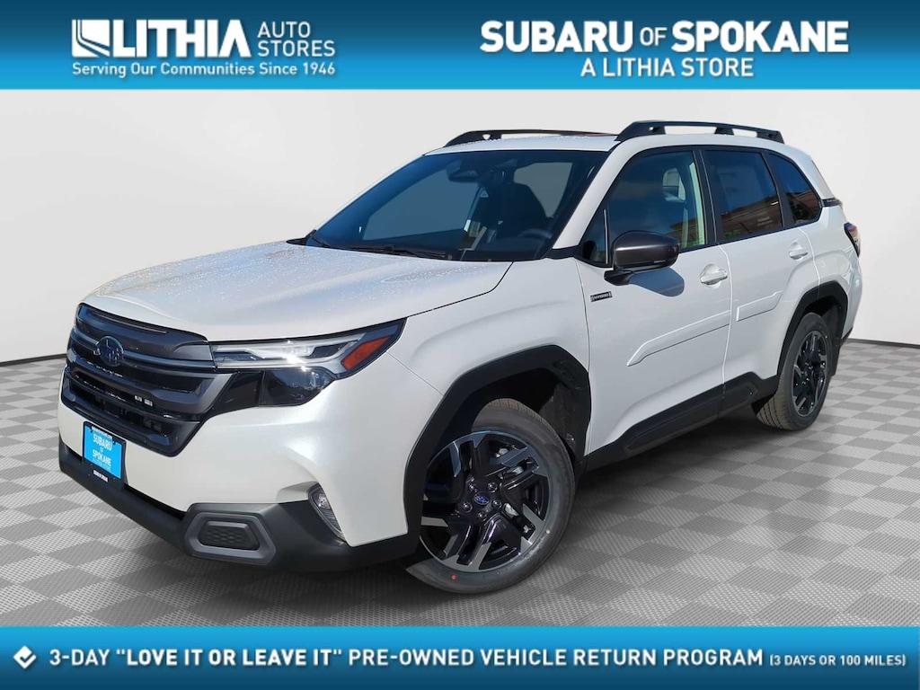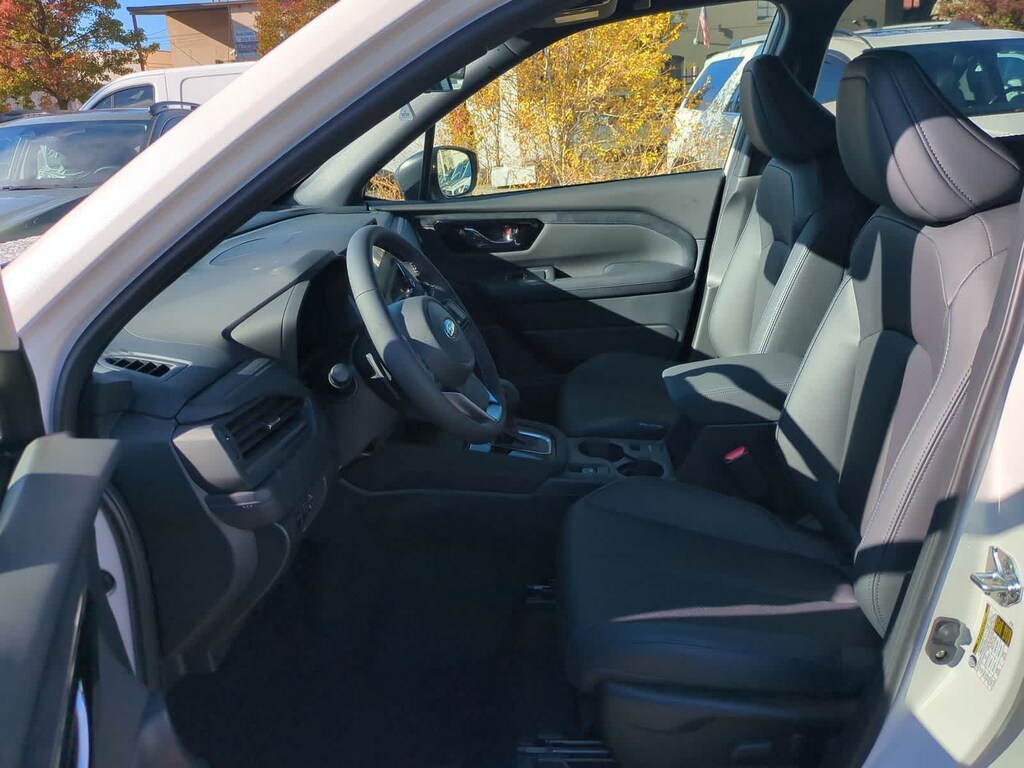 Clean CARFAX. Certified. Crystal White Pearl 2025 Subaru Forester Hybrid Limited AWD Lineartronic CVT 2.5L 4-Cylinder DOHC 16V Subaru Certified Pre-Owned Certified, 2.5L 4-Cylinder DOHC 16V, 11 Speakers, 4-Wheel Disc Brakes, ABS brakes, Air Conditioning, Alloy wheels, AM/FM radio: SiriusXM with 360L, Anti-whiplash front head restraints, Auto High-beam Headlights, Automatic temperature control, Brake assist, Bumpers: body-color, Compass, Driver door bin, Driver vanity mirror, Dual front impact airbags, Dual front side impact airbags, Electronic Stability Control, Emergency communication system: MySubaru Safety (3-year free trial), Exterior Parking Camera Rear, Four wheel independent suspension, Front anti-roll bar, Front Bucket Seats, Front Center Armrest, Front dual zone A/C, Front fog lights, Front reading lights, Fully automatic headlights, harman/kardonî Speakers, Heated door mirrors, Heated Front Bucket Seats, Heated front seats, Illuminated entry, Knee airbag, Low tire pressure warning, Navigation system: TomTom Navigation w/what3words, Occupant sensing airbag, Outside temperature display, Overhead airbag, Overhead console, Panic alarm, Passenger door bin, Passenger vanity mirror, Power door mirrors, Power driver seat, Power Liftgate, Power moonroof: Panoramic, Power passenger seat, Power steering, Power windows, Radio data system, Radio: Subaru 11.6 Multimedia Navigation System, Rear anti-roll bar, Rear seat center armrest, Rear window defroster, Rear window wiper, Remote keyless entry, Security system, Speed control, Speed-sensing steering, Split folding rear seat, Spoiler, Standard Model, StarTex Upholstery, Steering wheel mounted audio controls, Tachometer, Telescoping steering wheel, Tilt steering wheel, Traction control, Trip computer, Turn signal indicator mirrors, Variably intermittent wipers, Wheels: 18 x 7.0 J Dark Metallic Aluminum-Alloy, 2.5L 4-Cylinder DOHC 16V.