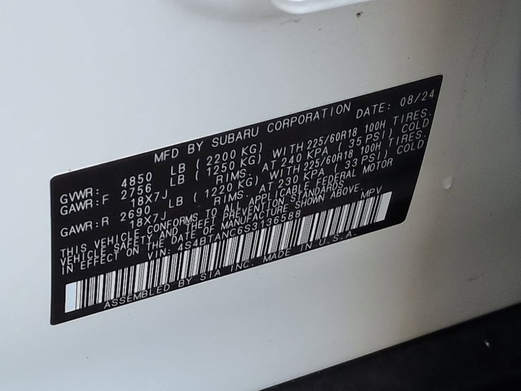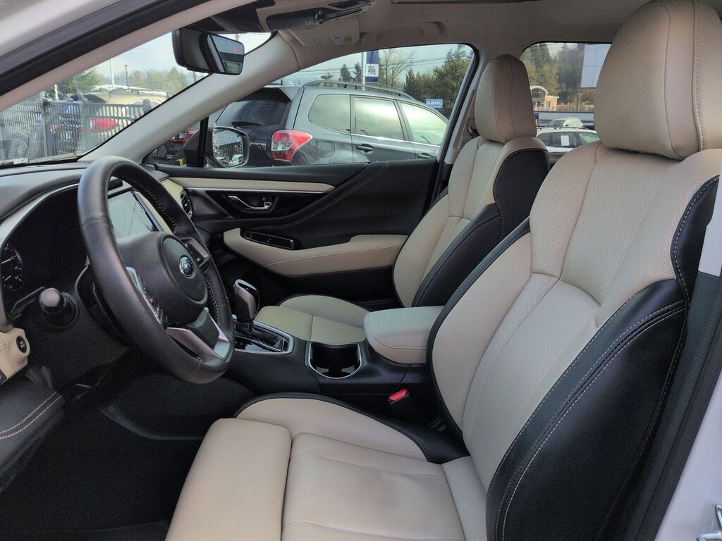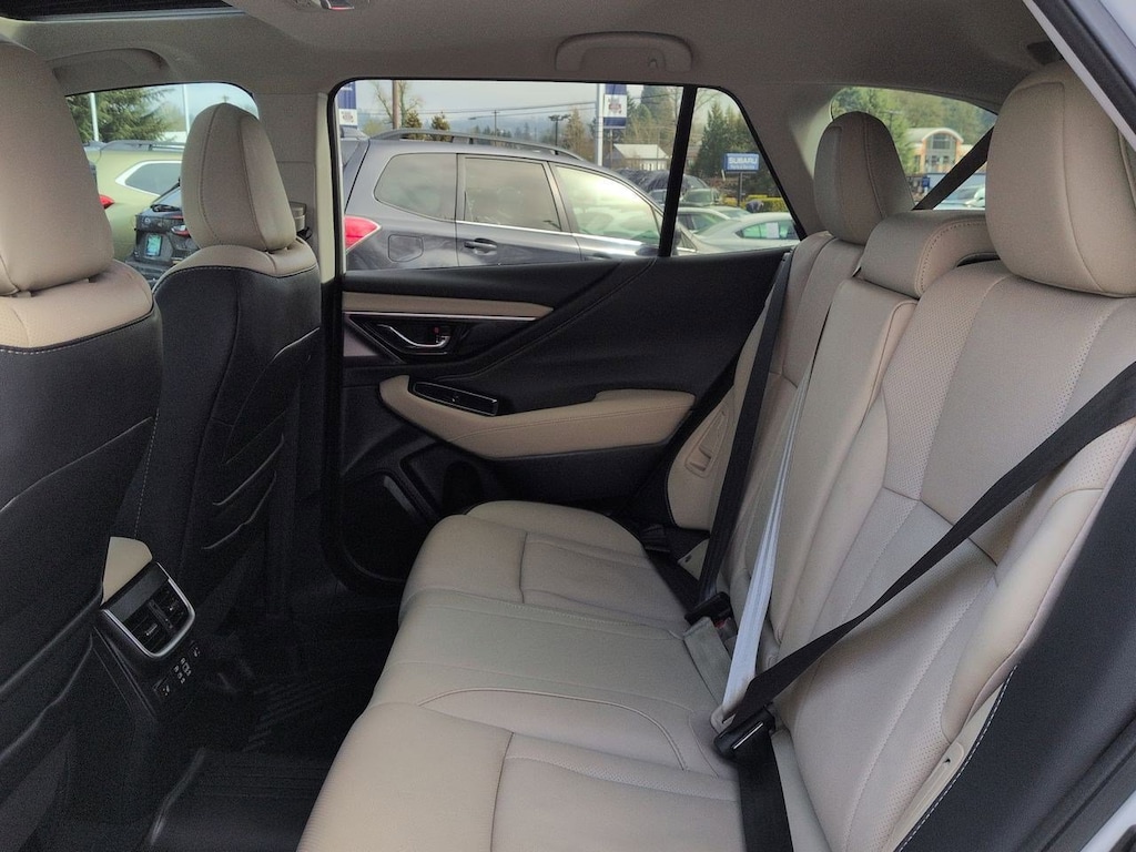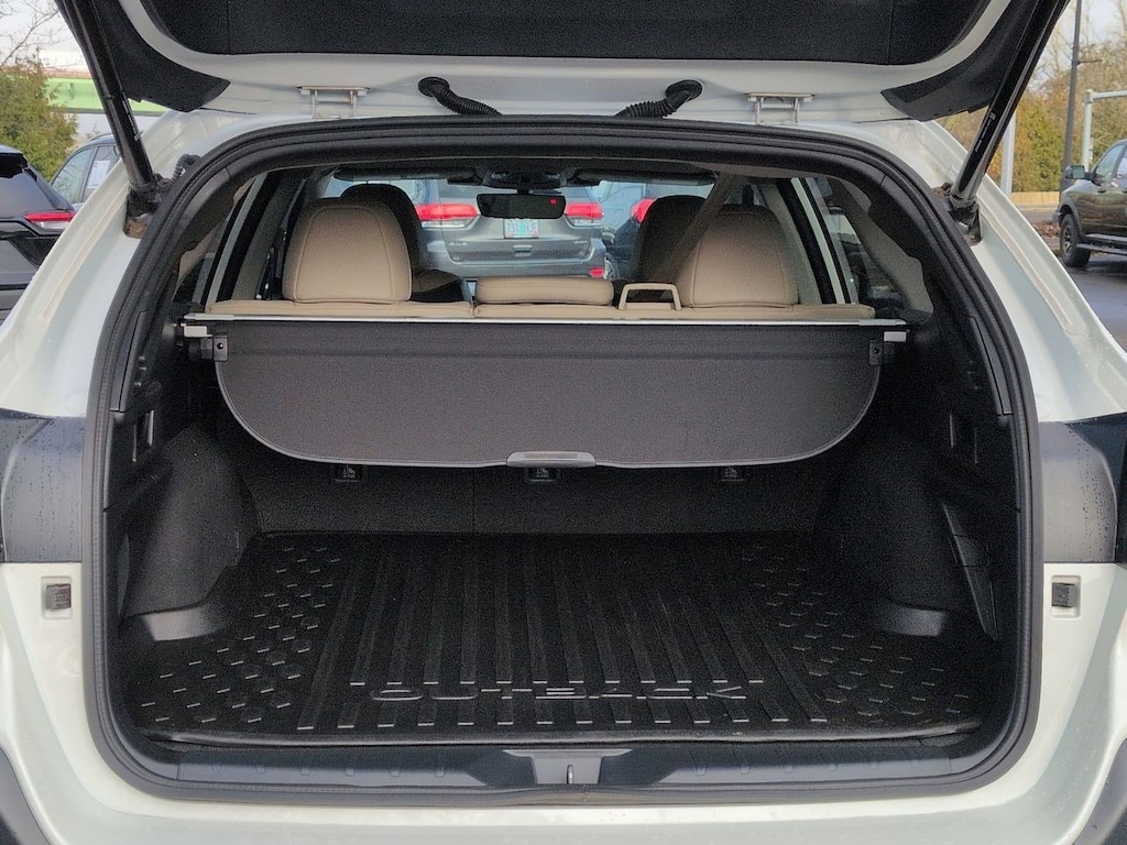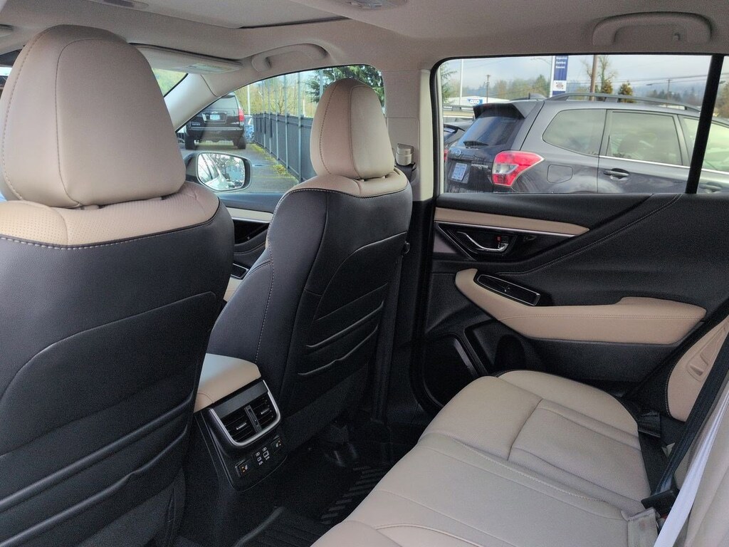 12 Speakers, 4-Wheel Disc Brakes, ABS brakes, Air Conditioning, Alloy wheels, AM/FM radio: SiriusXM with 360L, Apple CarPlay & Android Auto, Auto High-beam Headlights, Auto-Dimming Exterior Mirror w/Approach Light, Auto-dimming Rear-View mirror, Automatic temperature control, Brake assist, Bumpers: body-color, Compass, Driver door bin, Driver vanity mirror, Dual front impact airbags, Dual front side impact airbags, Electronic Stability Control, Emergency communication system: MySubaru Safety (3-year free trial), Exterior Parking Camera Rear, Four wheel independent suspension, Front anti-roll bar, Front Bucket Seats, Front Center Armrest w/Storage, Front dual zone A/C, Front fog lights, Front reading lights, Fully automatic headlights, Garage door transmitter: HomeLink, harman/kardonî Speakers, Heated door mirrors, Heated Front Bucket Seats, Heated front seats, Heated rear seats, Heated steering wheel, HVAC memory, Illuminated entry, Knee airbag, Leather Shift Knob, Leather steering wheel, LED Upgrade, Low tire pressure warning, Memory seat, Navigation system: TomTom Navigation w/what3words, Occupant sensing airbag, Outside temperature display, Overhead airbag, Overhead console, Panic alarm, Passenger door bin, Passenger vanity mirror, Perforated Leather-Trimmed Upholstery, Power door mirrors, Power driver seat, Power Liftgate, Power moonroof, Power passenger seat, Power steering, Power windows, Radio: Subaru 11.6 Multimedia System w/Navigation, Rear anti-roll bar, Rear seat center armrest, Rear window defroster, Rear window wiper, Remote keyless entry, Roof rack, Security system, Speed control, Speed-sensing steering, Splash Guards, Split folding rear seat, Spoiler, Standard Model, Steering wheel mounted audio controls, Tachometer, Telescoping steering wheel, Tilt steering wheel, Traction control, Trip computer, Turn signal indicator mirrors, Variably intermittent wipers, Wheels: 18 x 7J Black Aluminum-Alloy. Crystal White Pearl 2025 Subaru Outback Limited AWD CVT Lineartronic 2.5L 4-Cylinder DOHC 16V