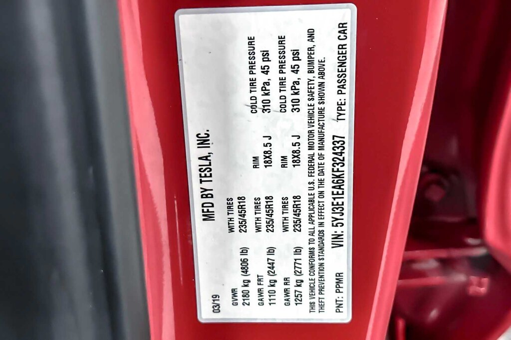 Red Multi-Coat 2019 Tesla Model 3 Long Range RWD 1-Speed Automatic Electric Motor ABS brakes, Alloy wheels, Compass, Electronic Stability Control, Front dual zone A/C, Heated door mirrors, Heated front seats, Heated rear seats, Illuminated entry, Low tire pressure warning, Navigation System, Remote keyless entry, Traction control.