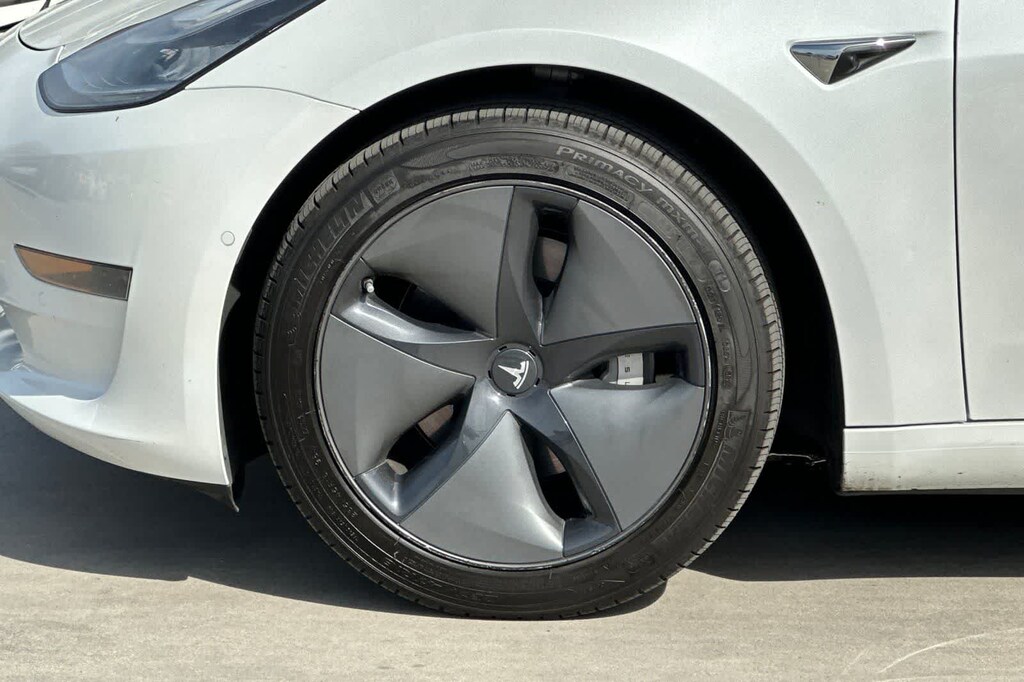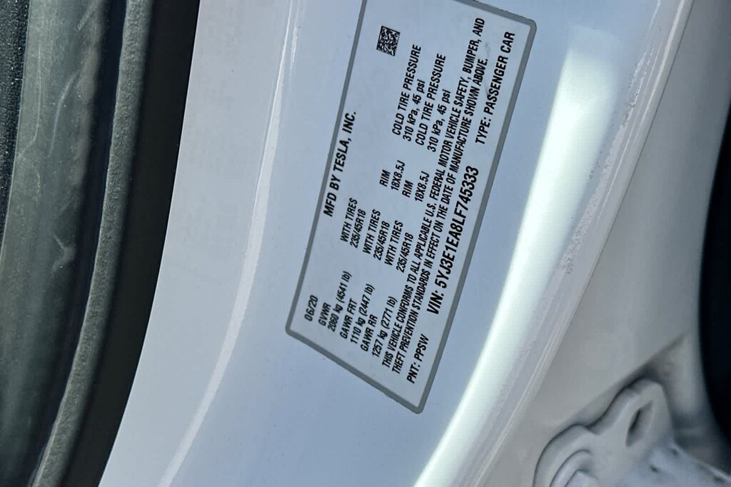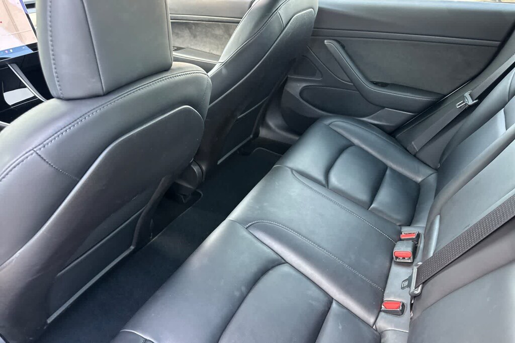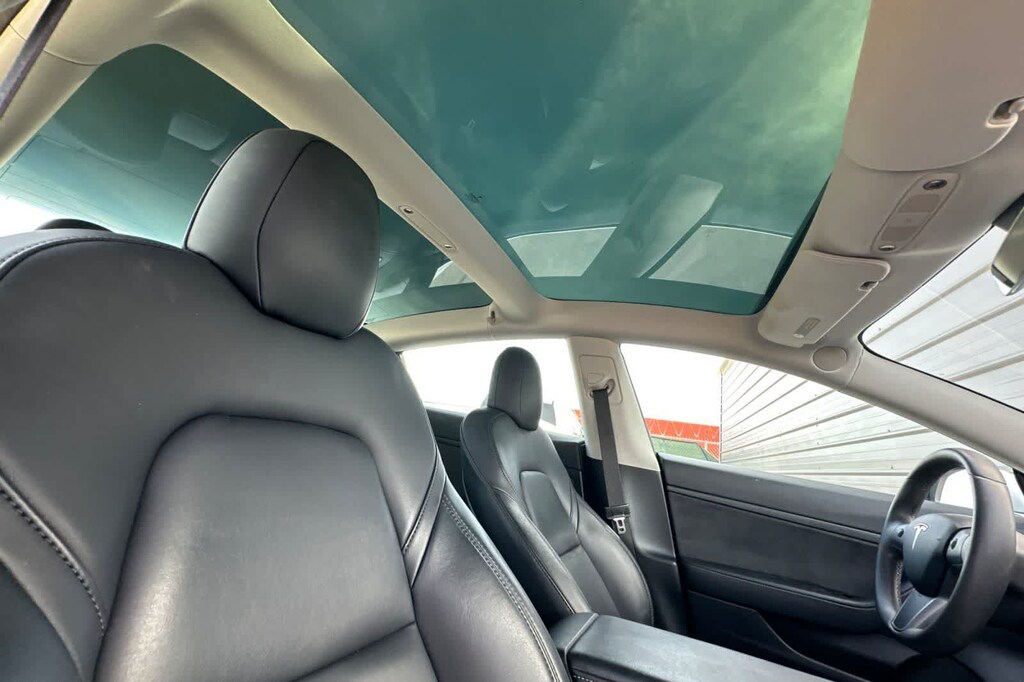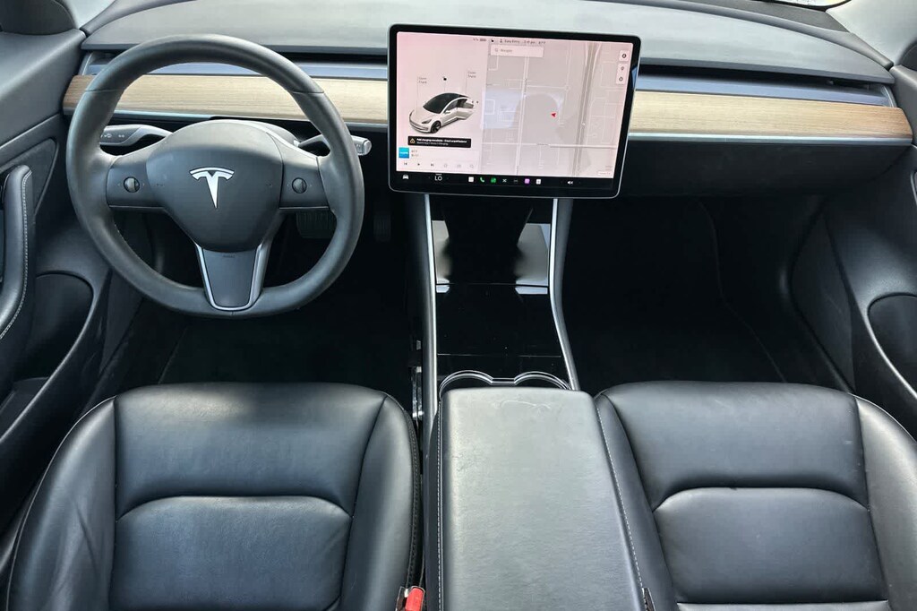 This Model 3 is finished in the White exterior paint and Black LEATHER interior.