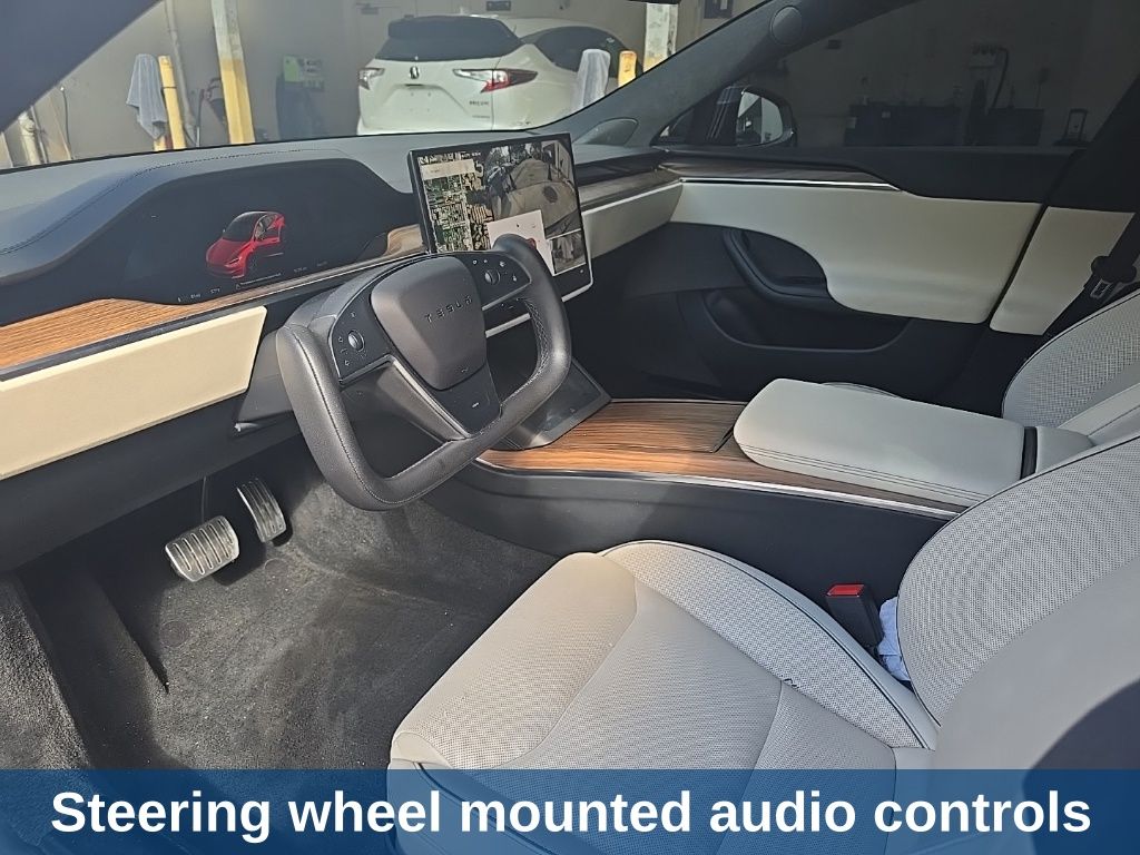 This Model S is well equipped with Model S Plaid, 4D Hatchback, Electric Motor, 1-Speed Automatic, AWD, Black, 22 Speakers, 4-Wheel Disc Brakes, ABS brakes, Adaptive suspension, Air Conditioning, Alloy wheels, Auto High-beam Headlights, Auto tilt-away steering wheel, Auto-dimming door mirrors, Auto-dimming Rear-View mirror, Auto-leveling suspension, Automatic temperature control, Brake assist, Bumpers: body-color, Compass, Delay-off headlights, Driver door bin, Driver vanity mirror, Dual front impact airbags, Dual front side impact airbags, Electronic Stability Control, Exterior Parking Camera Rear, Four wheel independent suspension, Front anti-roll bar, Front Bucket Seats, Front Center Armrest, Front dual zone A/C, Front fog lights, Front reading lights, Fully automatic headlights, Garage door transmitter: Homelink, Heated door mirrors, Heated front seats, Heated rear seats, Heated steering wheel, Illuminated entry, Knee airbag, Lane Departure Warning System, Leather steering wheel, Low tire pressure warning, Memory seat, Navigation System, Occupant sensing airbag, Outside temperature display, Overhead airbag, Passenger door bin, Passenger vanity mirror, Power door mirrors, Power driver seat, Power Liftgate, Power passenger seat, Power steering, Power windows, Premium Audio System, Premium Seat Trim, Radio data system, Rain sensing wipers, Rear air conditioning, Rear anti-roll bar, Rear audio controls, Rear reading lights, Rear seat center armrest, Rear window defroster, Remote keyless entry, Security system, Speed control, Speed-sensing steering, Speed-Sensitive Wipers, Split folding rear seat, Spoiler, Sport steering wheel, Steering wheel memory, Steering wheel mounted A/C controls, Steering wheel mounted audio controls, Telescoping steering wheel, Tilt steering wheel, Traction control, Trip computer, Variably intermittent wipers, Ventilated Front Bucket Seats, Ventilated front seats, and Wheels: 19" Tempest. Price does not inc