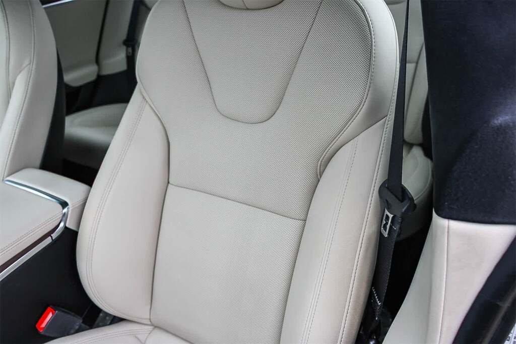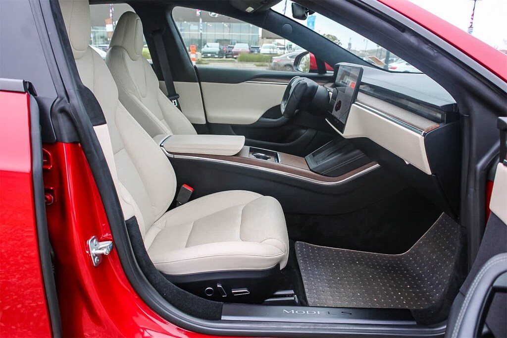 This 2022 Tesla Model S is finished in the Red Multi-Coat exterior paint and Cream LEATHER interior.