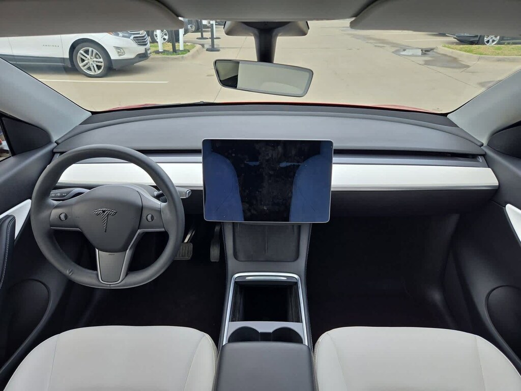 Inside, the minimalist cabin centers around a large touchscreen display that controls navigation, media, climate settings, and vehicle functions. Premium seating, a panoramic glass roof, and a spacious interior create a modern and comfortable environment for both driver and passengers. The Model Y also provides excellent cargo flexibility with a rear cargo area and front trunk, offering practical storage for everyday use.