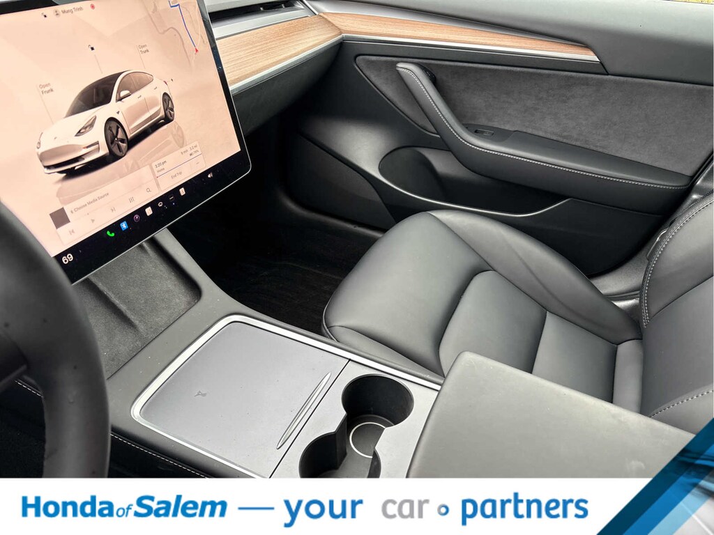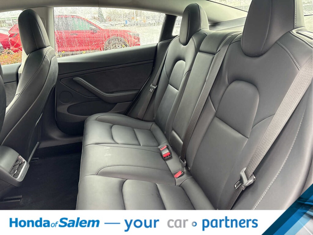 Navigation, Power Liftgate, Heated Driver Seat, Heated Rear Seat, Back-Up Camera, iPod/MP3 Input, Onboard Communications System, Dual Moonroof, Aluminum Wheels, Keyless Start, Dual Zone A/C, Lane Keeping Assist, Smart Device Integration, Blind Spot Monitor, Cross-Traffic Alert MP3 Player, Keyless Entry, Remote Trunk Release, Child Safety Locks, Steering Wheel Controls. Tesla Model 3 with Pearl White Multi-Coat exterior and Black interior features a Electric Motor.