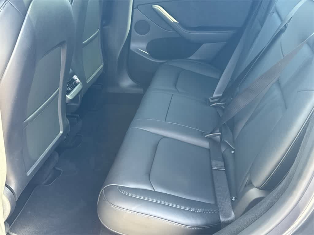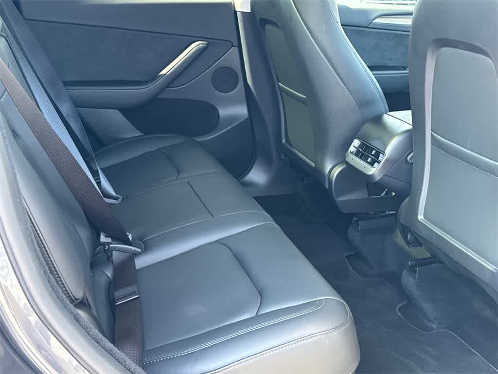 Model Y Long Range is nicely equipped with 14 Speakers, 4-Wheel Disc Brakes, 5 Seat Interior, 9.0 Axle Ratio, ABS brakes, Air Conditioning, Alloy wheels, Audio memory, Auto High-beam Headlights, Auto tilt-away steering wheel, Auto-dimming door mirrors, Auto-dimming Rear-View mirror, Automatic temperature control, Brake assist, Bumpers: body-color, Compass, Delay-off headlights, Driver door bin, Driver vanity mirror, Dual front impact airbags, Dual front side impact airbags, Electronic Stability Control, Emergency communication system, Exterior Parking Camera Rear, Four wheel independent suspension, Front anti-roll bar, Front Bucket Seats, Front Center Armrest, Front dual zone A/C, Front fog lights, Front reading lights, Fully automatic headlights, Genuine wood dashboard insert, Heated door mirrors, Heated front seats, Heated rear seats, Heated steering wheel, HVAC memory, Illuminated entry, Knee airbag, Lane Departure Warning System, Low tire pressure warning, Memory seat, Navigation System, Occupant sensing airbag, Outside temperature display, Overhead airbag, Passenger door bin, Passenger vanity mirror, Power door mirrors, Power driver seat, Power Liftgate, Power passenger seat, Power steering, Power windows, Premium Audio System, Radio data system, Rain sensing wipers, Rear reading lights, Rear seat center armrest, Rear window defroster, Security system, Speed control, Speed-sensing steering, Split folding rear seat, Steering wheel memory, Steering wheel mounted A/C controls, Steering wheel mounted audio controls, Telescoping steering wheel, Tilt steering wheel, Traction control, Trip computer, Variably intermittent wipers, Vegan Leather Seat Trim, and Wheels: 19 x 9.5 Gemini.
