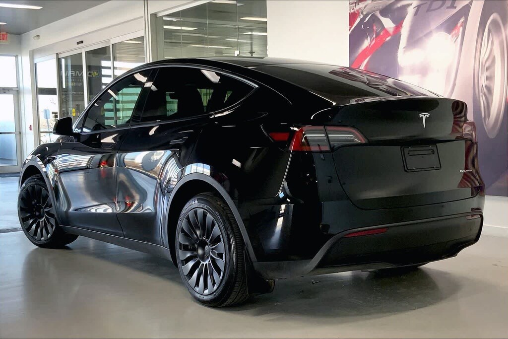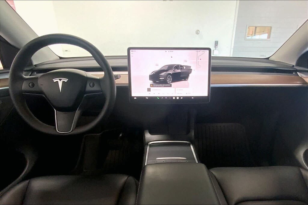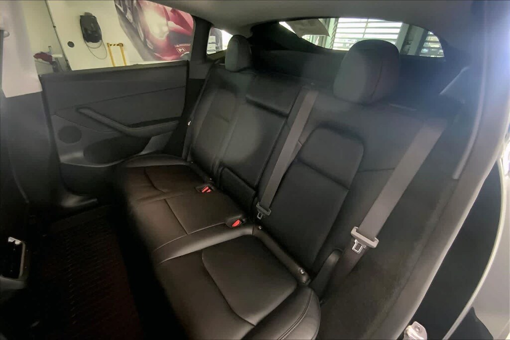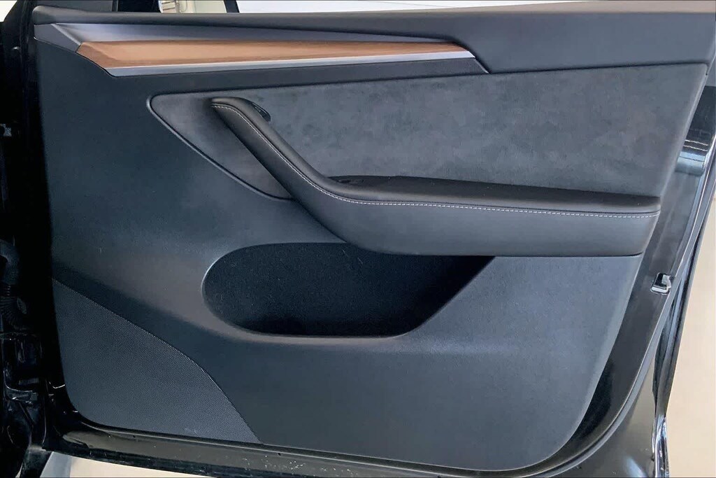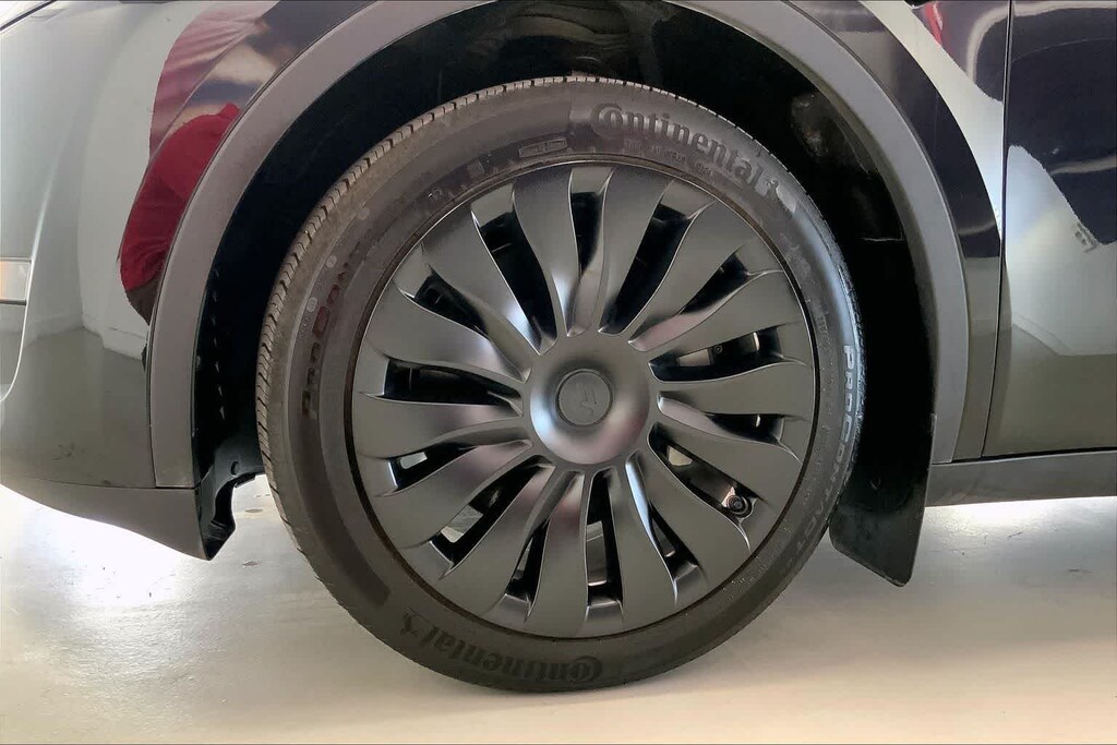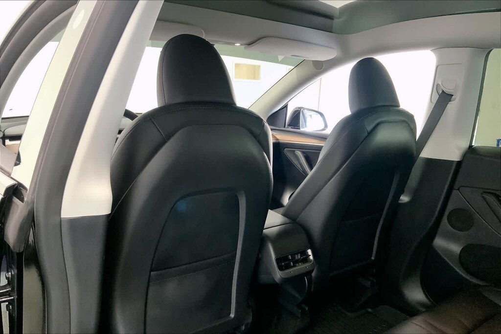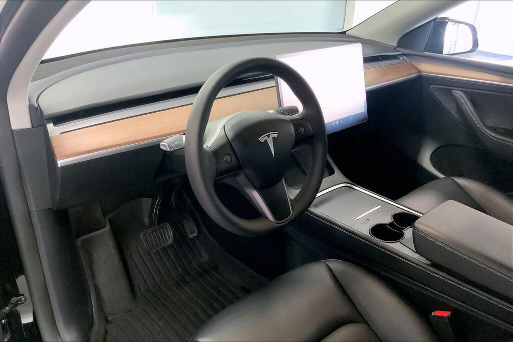 Model Y Long Range is nicely equipped with 14 Speakers, 4-Wheel Disc Brakes, 5 Seat Interior, 9.0 Axle Ratio, ABS brakes, Air Conditioning, Alloy wheels, Audio memory, Auto High-beam Headlights, Auto tilt-away steering wheel, Auto-dimming door mirrors, Auto-dimming Rear-View mirror, Automatic temperature control, Brake assist, Bumpers: body-color, Compass, Delay-off headlights, Driver door bin, Driver vanity mirror, Dual front impact airbags, Dual front side impact airbags, Electronic Stability Control, Emergency communication system, Exterior Parking Camera Rear, Four wheel independent suspension, Front anti-roll bar, Front Bucket Seats, Front Center Armrest, Front dual zone A/C, Front fog lights, Front reading lights, Fully automatic headlights, Genuine wood dashboard insert, Heated door mirrors, Heated front seats, Heated rear seats, Heated steering wheel, HVAC memory, Illuminated entry, Knee airbag, Lane Departure Warning System, Low tire pressure warning, Memory seat, Navigation System, Occupant sensing airbag, Outside temperature display, Overhead airbag, Passenger door bin, Passenger vanity mirror, Power door mirrors, Power driver seat, Power Liftgate, Power passenger seat, Power steering, Power windows, Radio data system, Radio: Premium Audio System w/13 Speakers, Rain sensing wipers, Rear reading lights, Rear seat center armrest, Rear window defroster, Security system, Speed control, Speed-sensing steering, Split folding rear seat, Steering wheel memory, Steering wheel mounted A/C controls, Steering wheel mounted audio controls, Telescoping steering wheel, Tilt steering wheel, Traction control, Trip computer, Variably intermittent wipers, Vegan Leather Seat Trim, and Wheels: 19 x 9.5 Gemini Dark.