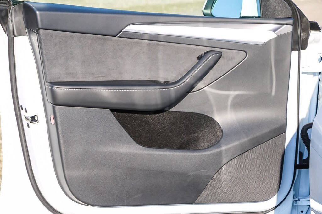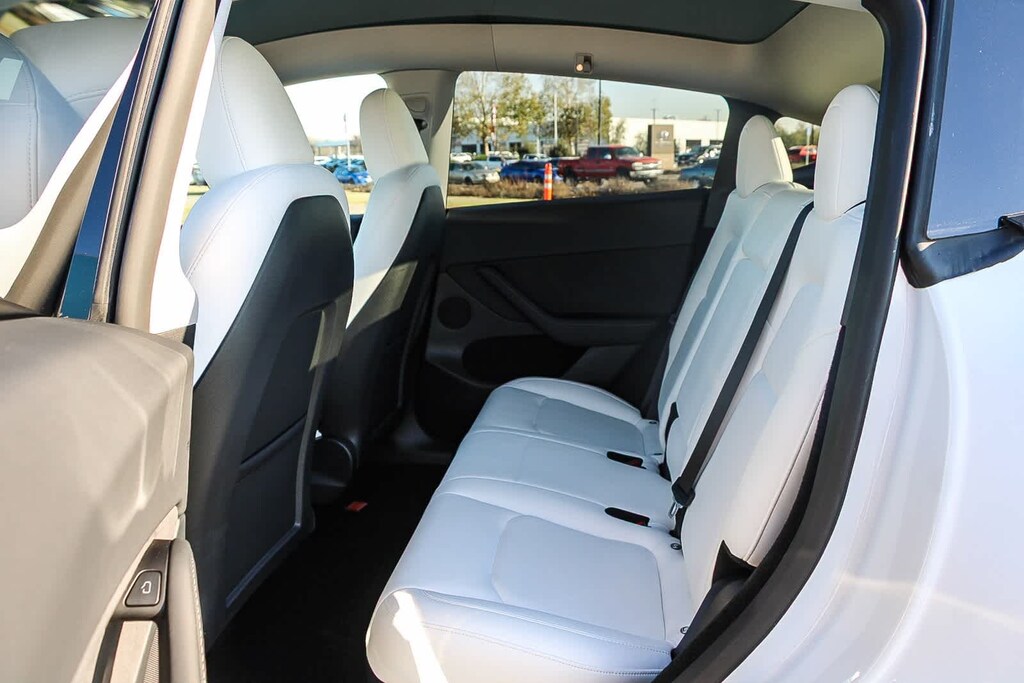 This 2024 Tesla Model Y Long Range is finished in the White exterior paint and Black Leather interior.