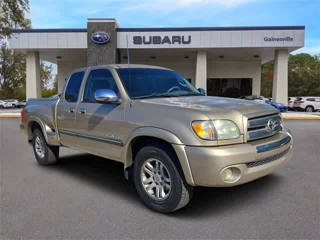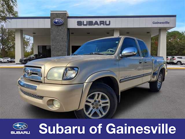 This 2003 Toyota Tundra SR5 in Desert Sand, features 17 Alloy Wheels, 3.916 Axle Ratio, ABS brakes, Air Conditioning, AM/FM radio, Bodyside moldings, Bumpers: body-color, Cassette, Cloth Seat Trim, Driver door bin, Driver vanity mirror, Dual front impact airbags, Fog Lamps, Front 60/40 Split Bench Seat, Front anti-roll bar, Front Center Armrest w/Storage, Front wheel independent suspension, Passenger cancellable airbag, Passenger door bin, Passenger vanity mirror, Power steering, Rear seat center armrest, Rear step bumper, Speed control, Speed-sensing steering, Split folding rear seat, Tachometer, Tilt steering wheel, Variably intermittent wipers, and Voltmeter: POWER PACKAGE, ALLOY WHEELS, ONE OWNER NEVER A RENTAL, CLEAN VEHICLE HISTORY.