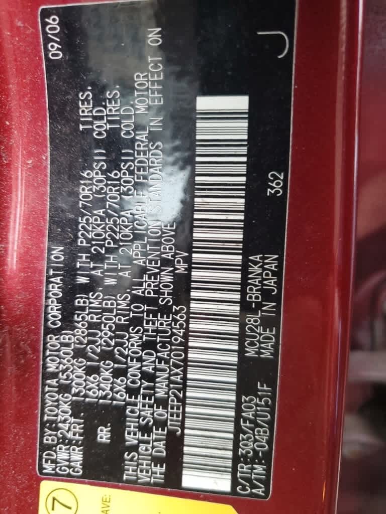 2007 Toyota Highlander V6 Odometer is 60510 miles below market average!