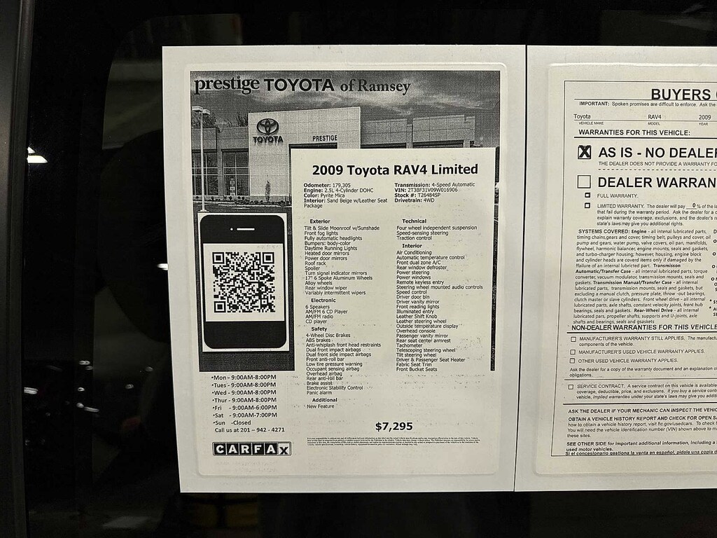 This 2009 Toyota RAV4 Limited will not make it to the weekend!! CALL NOW to reserve your test drive!! (844) 838-7075 Please Visit www.PrestigeToyota.com for further details. Price does not include licensing costs, registration fees, taxes and dealer doc fee of $999 which are to be paid by the consumer.