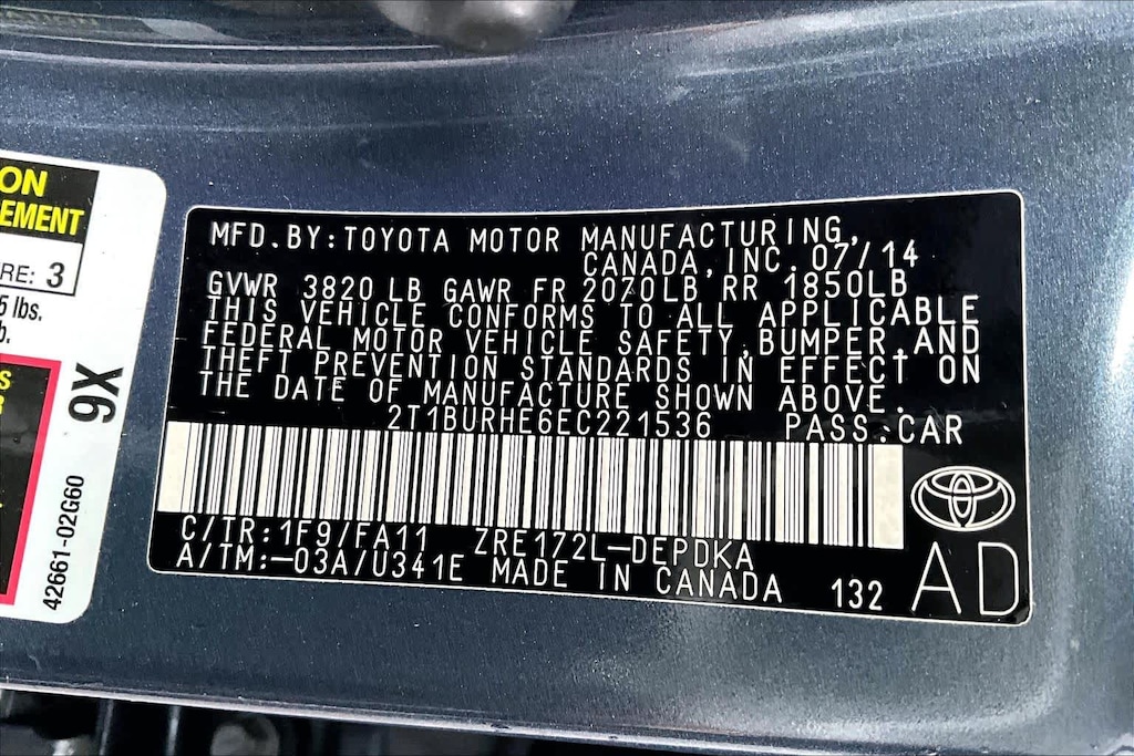 BODY SIDE MOLDINGS. Toyota L with Slate Metallic exterior and DARK CHARCOAL interior features a 4 Cylinder Engine with 132 HP at 6000 RPM*.