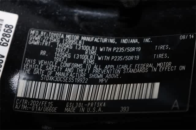 Third Row Seat, Power Liftgate, Rear Air, Satellite Radio, Aluminum Wheels Toyota SE with Black exterior and DARK CHARCOAL interior features a V6 Cylinder Engine with 266 HP at 6200 RPM*.