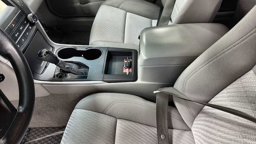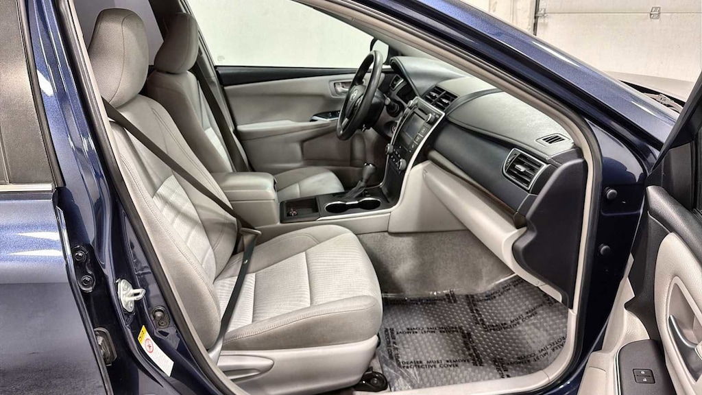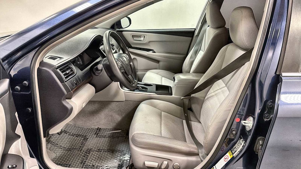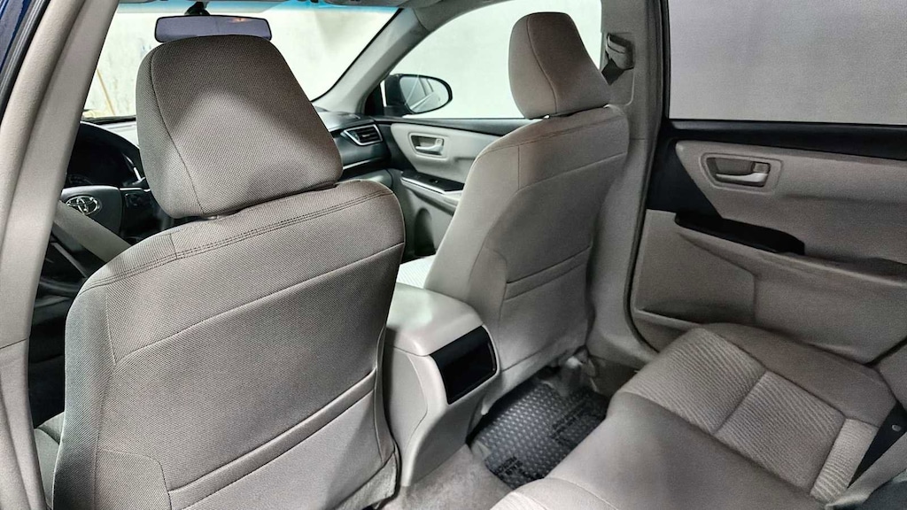 Edmunds.com explains The 2015 Toyota Camry is blessed with one of the most comfortable and spacious cabins in the midsize family sedan segment. Even tall adults will find plenty of space above their heads and in front of their knees, while a rear-facing child seat will fit in back with ease..