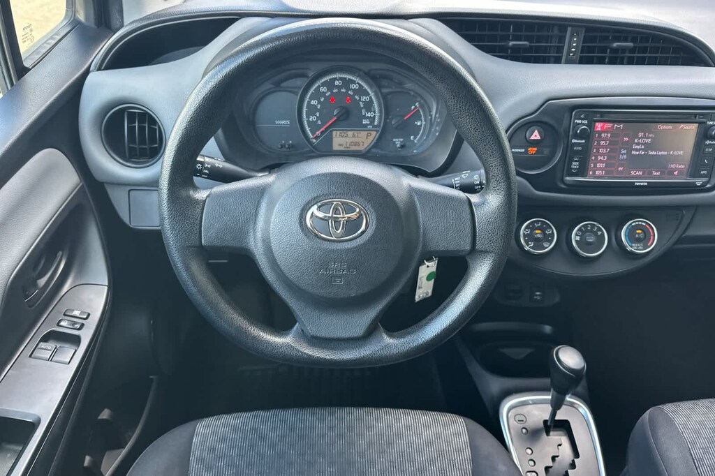 Lithia Ford and Lincoln of Fresno is pleased to offer this Classic Silver Metallic 2015 Toyota Yaris L for purchase, this vehicle is well equipped with many features including: 6 Speakers, ABS brakes, Air Conditioning, AM/FM radio, Brake assist, Bumpers: body-color, CD player, Driver door bin, Driver vanity mirror, Dual front impact airbags, Dual front side impact airbags, Electronic Stability Control, Fabric Seat Trim (FQ), Front anti-roll bar, Front Bucket Seats, Front reading lights, Front wheel independent suspension, Knee airbag, Low tire pressure warning, Occupant sensing airbag, Outside temperature display, Overhead airbag, Passenger door bin, Passenger vanity mirror, Power steering, Power windows, Radio data system, Radio: Entune Audio, Rear window defroster, Rear window wiper, Split folding rear seat, Tilt steering wheel, Traction control, Trip computer, and Wheels: 5.5J x 15 Black Steel w/Full Wheel Covers. FWD 1.5L I4 DOHC VVT-i 16V 4-Speed Automatic with Overdrive L