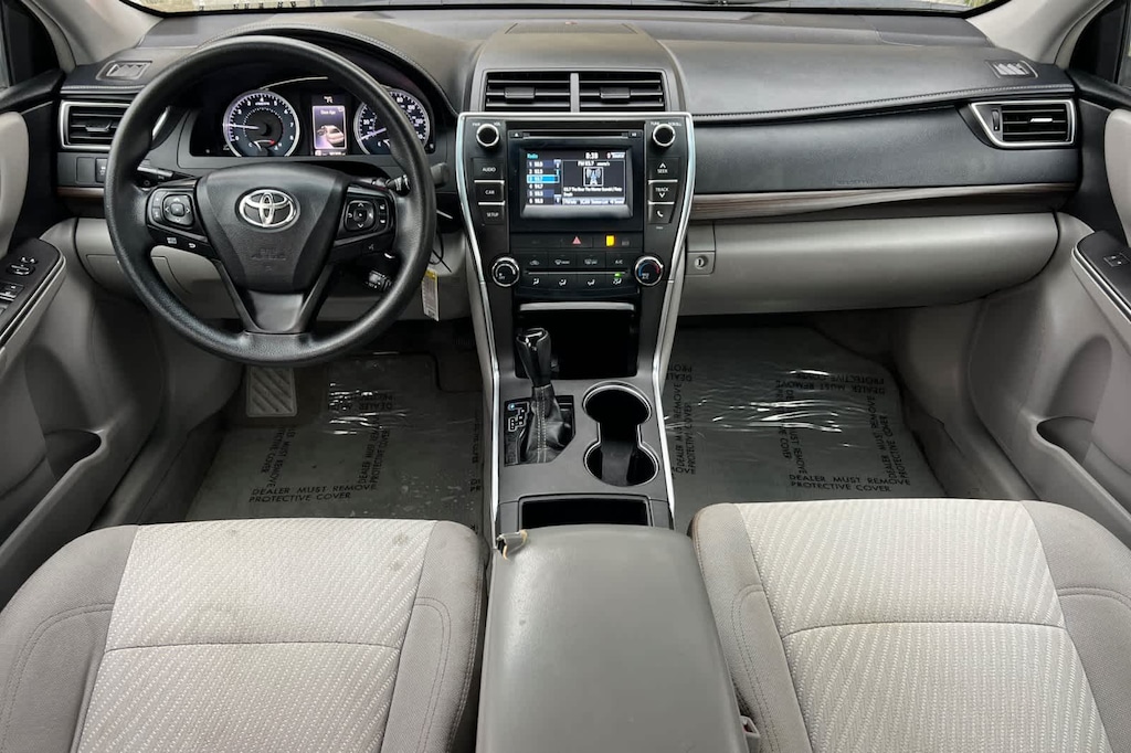 Silver 2016 Toyota Camry LE FWD 6-Speed Automatic 2.5L I4 SMPI DOHC ABS brakes, Electronic Stability Control, Heated door mirrors, Illuminated entry, Low tire pressure warning, Remote keyless entry, Traction control.