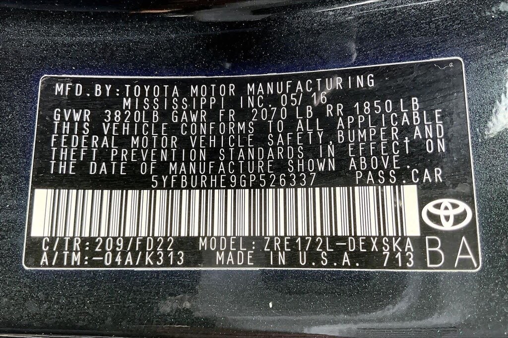 Black Sand Pearl 2016 Toyota Corolla L FWD 1.8L I4 DOHC Dual VVT-i 6 Speakers, ABS brakes, Air Conditioning, AM/FM radio, Brake assist, Bumpers: body-color, CD player, Delay-off headlights, Driver door bin, Driver vanity mirror, Dual front impact airbags, Dual front side impact airbags, Electronic Stability Control, Front anti-roll bar, Front Bucket Seats, Front Center Armrest w/Storage, Front reading lights, Front wheel independent suspension, Illuminated entry, Knee airbag, Low tire pressure warning, Occupant sensing airbag, Outside temperature display, Overhead airbag, Passenger door bin, Passenger vanity mirror, Power door mirrors, Power steering, Power windows, Radio data system, Radio: AM/FM/CD Player w/6.1 Touch Screen, Rear anti-roll bar, Rear window defroster, Speed-sensing steering, Split folding rear seat, Steering wheel mounted audio controls, Tachometer, Telescoping steering wheel, Tilt steering wheel, Traction control, Trip computer.