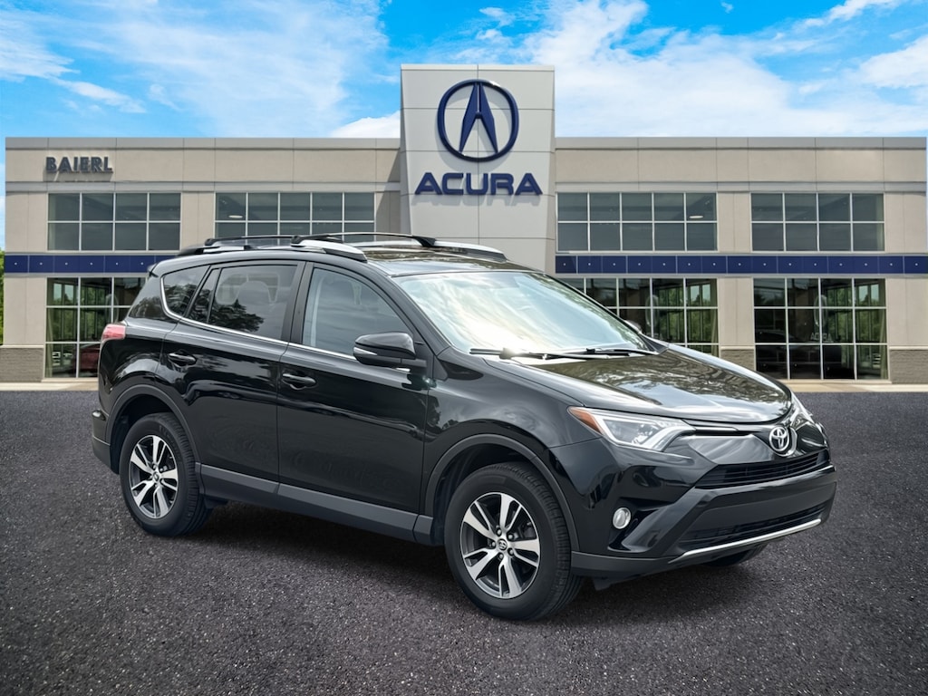 Baierl Acura is pumped up to offer this good-looking 2016 Toyota RAV4 in Black. This vehicle has been through our award winning factory trained service department*** and comes with the following features; Theres no back-and-forth, we offer one fair price, Sold 100% As Is, AWD, Blk/Black Cloth, 4-Wheel Disc Brakes, 6 Speakers, ABS brakes, Adaptive Cruise Control, Air Conditioning, AM/FM radio: SiriusXM, Automatic temperature control, Brake assist, Bumpers: body-color, Driver door bin, Driver vanity mirror, Dual front impact airbags, Dual front side impact airbags, Electronic Stability Control, Exterior Parking Camera Rear, Fabric Seat Trim, Four wheel independent suspension, Front anti-roll bar, Front Center Armrest, Front dual zone A/C, Front fog lights, Front reading lights, Front Sport Seats, Heated door mirrors, Illuminated entry, Knee airbag, Leather steering wheel, Low tire pressure warning, Occupant sensing airbag, Outside temperature display, Overhead airbag, Overhead console, Panic alarm, Passenger door bin, Passenger vanity mirror, Power door mirrors, Power Liftgate, Power moonroof, Power steering, Power windows, Radio data system, Radio: Entune Audio Plus AM/FM/MP3/WMA Playback, Rear anti-roll bar, Rear seat center armrest, Rear window defroster, Rear window wiper, Remote keyless entry, Roof rack: rails only, Speed control, Speed-sensing steering, Split folding rear seat, Spoiler, Steering wheel mounted audio controls, Tachometer, Telescoping steering wheel, Traction control, Trip computer, Turn signal indicator mirrors, Variably intermittent wipers, Wheels: 17 x 7.0J 5-Spoke Superchrome Alloy.