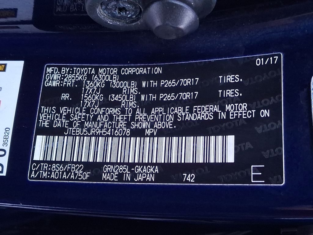 CARFAX One-Owner. Clean CARFAX. 4WD, Black w/Leather Seat Trim, 17" x 7.0" 6-Spoke Alloy Wheels, ABS brakes, Alloy wheels, Electronic Stability Control, Heated door mirrors, Illuminated entry, Low tire pressure warning, Remote keyless entry, Traction control. Blue 2017 Toyota 4Runner SR5 SR5 4WD 5-Speed Automatic with Overdrive 4.0L V6 SMPI DOHC