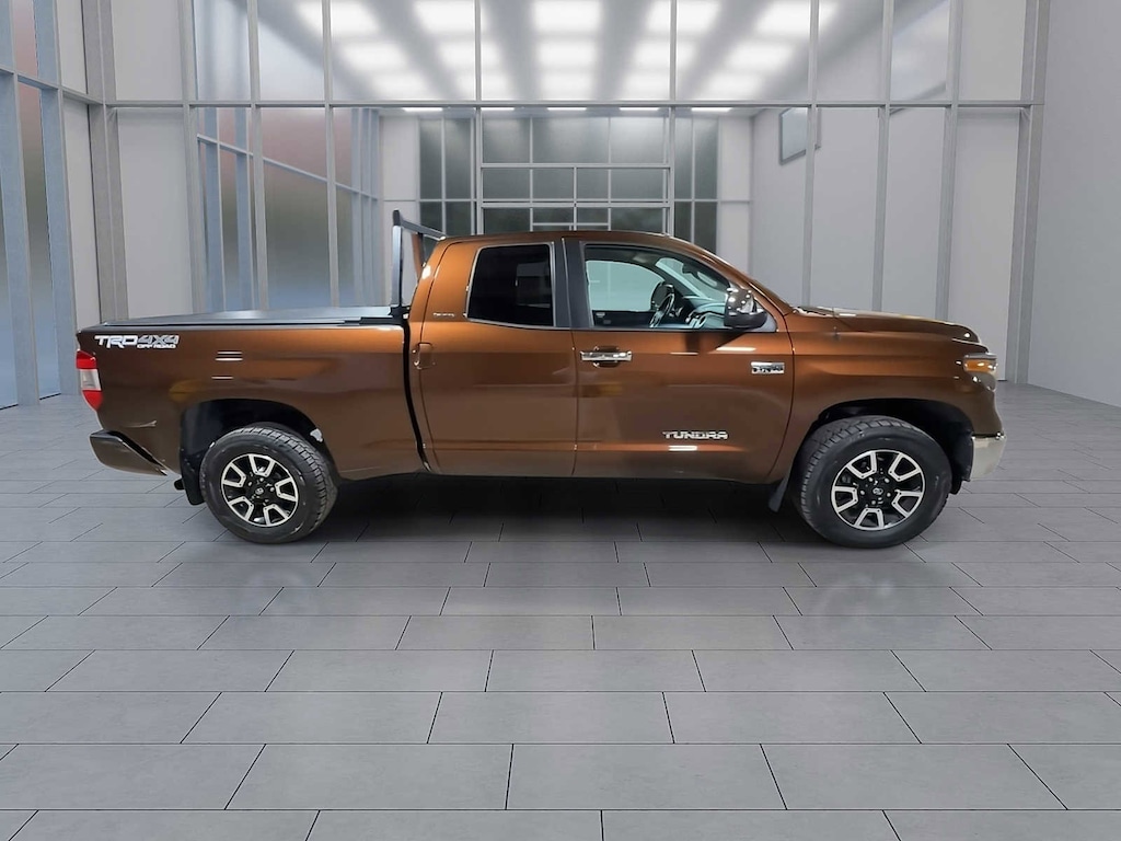 Tundra Limited, 4D Double Cab, i-Force 5.7L V8 DOHC 32V LEV, 6-Speed Automatic Electronic with Overdrive, 4WD, Black w/Leather Seat Trim (LB) or Leather Seat Trim w/TRD Off-Road Package, Blind Spot Monitor w/Rear Cross Traffic Alert, Color-Keyed Rear Bumper, Front & Rear Parking Assist Sonar, Glass Breakage Sensors (GBS), Illuminated Entry System, Leather Seat Trim w/TRD Off-Road Package, Limited Premium Package, Power Windows w/Front Auto Up/Down, Trail-Tuned Bilstein Shock Absorbers, TRD Off Road Package, TRD Off-Road Graphics, Wheels: 18 x 8J Split 5-Spoke TRD Off-Road Alloy. Clean CARFAX. Sunset Bronze Mica 2017 Toyota Tundra Limited 4WD 6-Speed Automatic Electronic with Overdrive i-Force 5.7L V8 DOHC 32V LEV