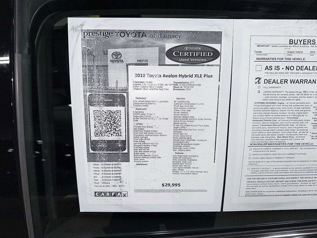 This 2019 Toyota Avalon Hybrid XLE Plus will not make it to the weekend!! CALL NOW to reserve your test drive!! (844) 838-7075 Please Visit www.PrestigeToyota.com for further details. Price does not include licensing costs, registration fees, taxes and dealer doc fee of $999 which are to be paid by the consumer.